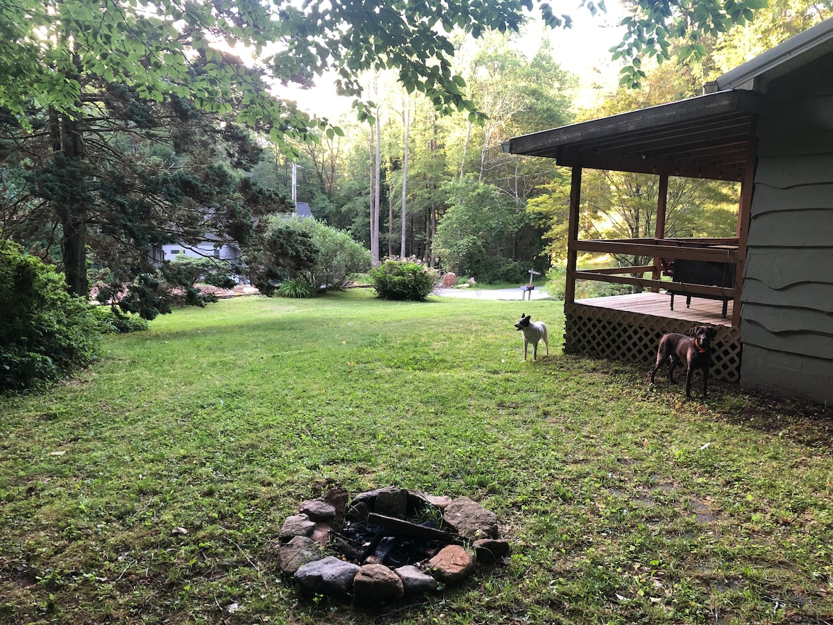 Cozy one bedroom log cabin with large private back deck and hot tub. While being surrounded by nature can be an enjoyable and a relaxing break from hectic day to day lifestyles, please realize that this cabin is in the woods and we do have carpenter bees and camel crickets along with some ants. We strive to keep the pests at bay but they are part of mountain life. Shared spaces include the fire pit along with the overlook bench.