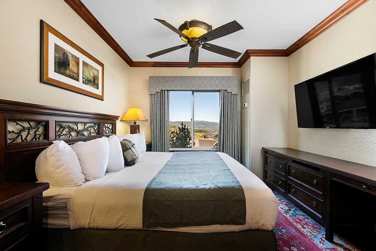 All-season getaway luxury and convenience in this beautifully appointed studio condo (360 sq. ft.) at the Westgate Park City Resort & Spa, ranked “Best Ski Resort” by Best of State Utah multiple times. Skiing and hiking are steps outside your door at the base of the Canyons Red Pine Gondola! After a great day of skiing, hiking, or mountain biking enjoy one of 3 pools, 4 hot tubs, or your own steam shower in the condo! Includes heated parking and there are no resort fees.