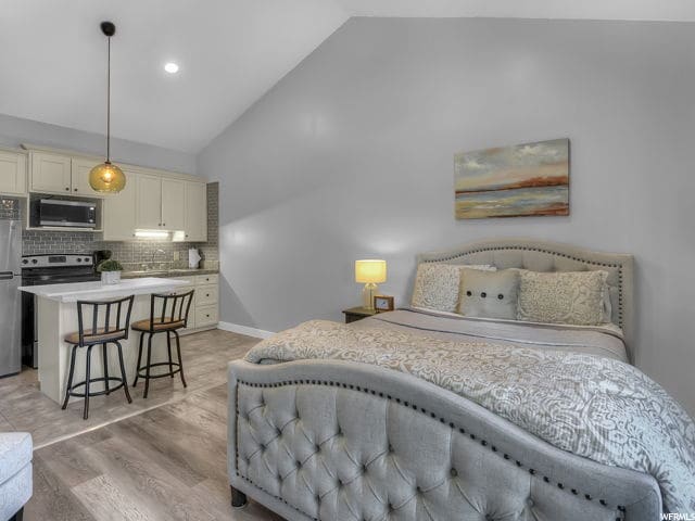 This luxury loft provides you the best of every Park City opportunity! Escape to this top floor, vaulted condo. Take the FREE shuttle right outside your door to the ski resort, outlets, or Park City Main Street. Or hop on one of the provided bikes and take on the trails. Ready to relax? Enjoy a movie on your large-screen TV or soak in the pool or hot tub. Free parking provided & EV charging on site. Washer & Dryer in unit. Restaurants within walking distance. 24/7 Front Desk.