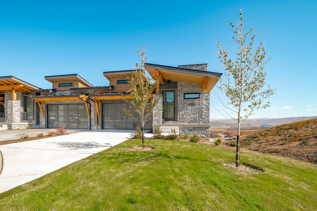 This stylish condo has stunning views of Deer Valley and Park City ski resorts minutes away, overlooking the Jordanelle Reservoir and Upper Provo River, in a new luxury home community called Benloch Ranch. Sit in the private 7 person hot tub or outdoor Finnish sauna, taking in the magnificent views, even do yoga outside on the deck, or relax after a day of skiing, hiking, biking, fly fishing, paddleboarding on neighborhood ponds or nearby lake, or other Park City area activities.