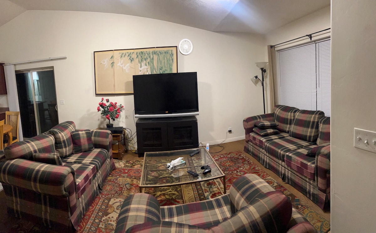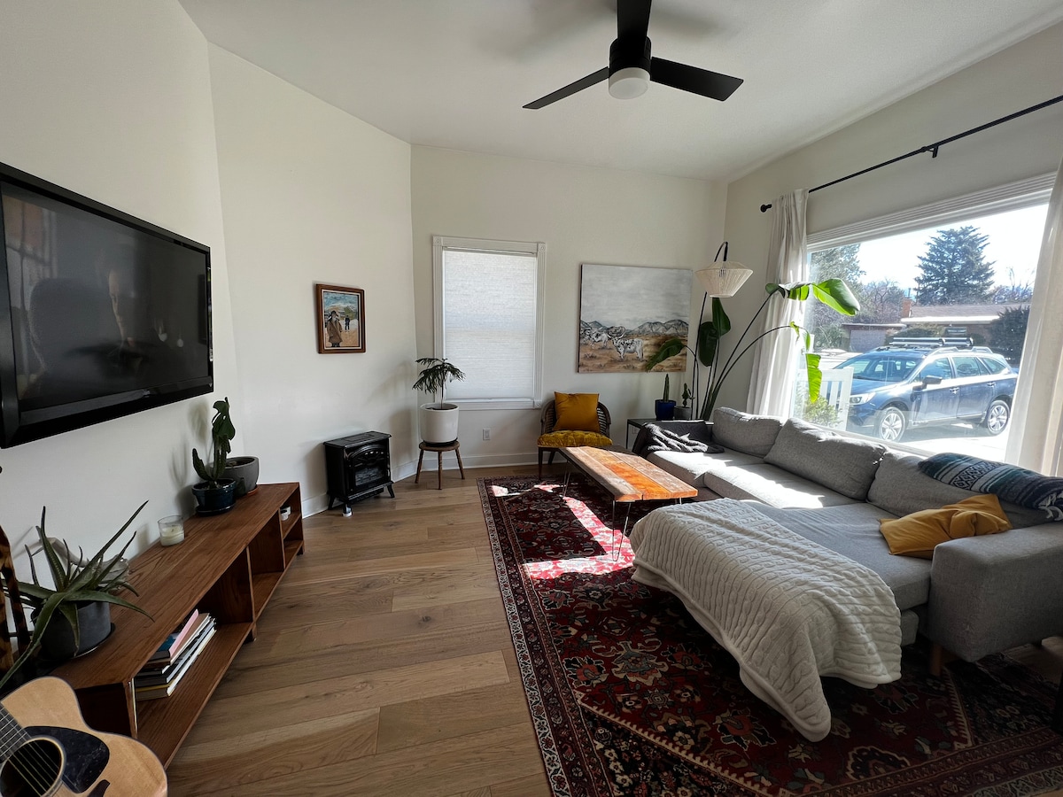 600 SqFt Studio Apt. Large Bedroom, full kitchen w/Oven, Automatic Espresso Maker, Upscale Fridge, Washer and Dryer. Private Entry through New Kitchen, Queen Size Bed, Desk, Twin XL Murphy Bed, 55" TV with High speed WIFI. Huge Upscale Priv Bath w/Jetted tub, separate shower and two sinks. 20 - 45 minutes to 8 ski resorts. 15 minutes to Airport, 6 minutes to Downtown. 1 Parking Space in Driveway. This is no longer a shared space as reviews suggest. Deep discounts for 2 week or longer stays.
