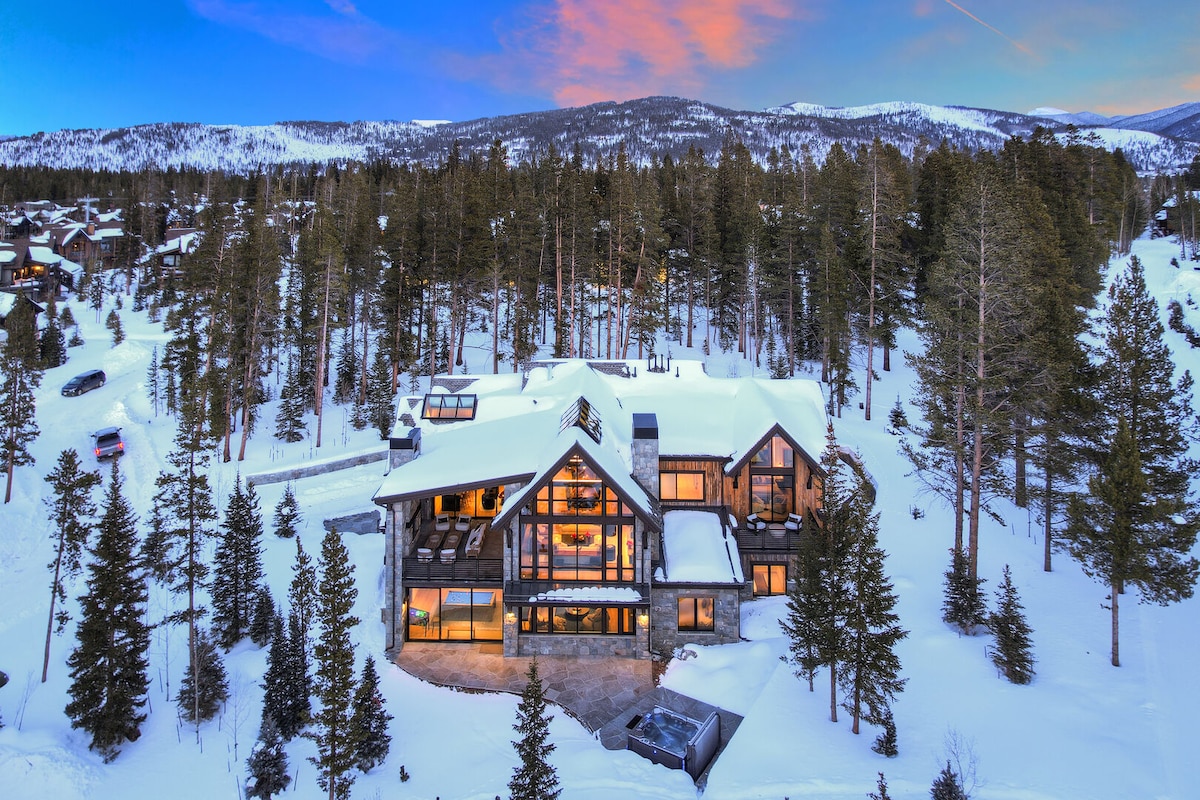 The all-new Snowy Owl Retreat by the Gondola offers the ultimate in effortless technology, mountain vistas, and elegant design. Highlights include Pietra d'Avola stone throughout, seven luxurious bedrooms, two expansive gathering rooms, and curated ambiance for up to eighteen guests. Enjoy magnificent views of the Breck Ski Resort peaks paired with unparalleled access to the trails, and historic Main Street.