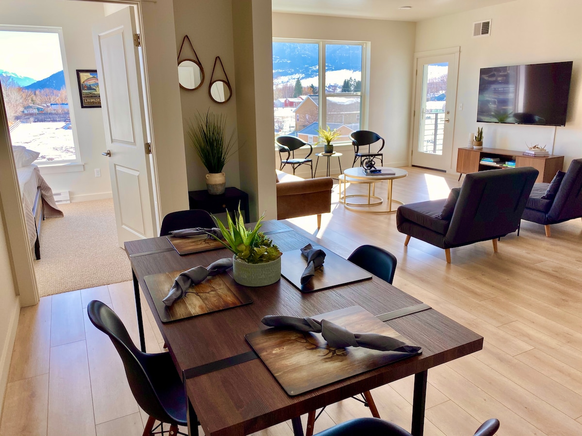 Dream of streams is a brand new beautifully designed mountain view condo. Conveniently located near bike/run paths, walking distance to food, coffee, and Albertsons. Cruise downtown or grab a fishing pole and head to Yellowstone River or Carter Fishing Bridge ~3 mi, drive to Chico Hot Springs ~25mi, checkout Sage Lodge ~20 mi, grab skis or a snowboard and arrive at Bridger Bowl Ski Area ~25 mi, head to Yellowstone National Park ~50 mi, or hop on I-90 and head to Bozeman ~23 mi.