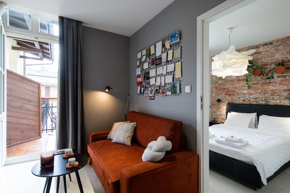 Located right in the heart of Kazimierz is this modern apt with stylish Scandi design that offers simplicity, minimalism and functionality for a truly relaxing stay. The apt features bright sun-filled living with high ceilings, soft furnishings, and floor to ceiling French doors that open out to the balcony. Walk to historic sites and Nowy Square with its top restaurants and nightlife or sit on the banks of Vistula River right on your doorstep. Make your stay in Krakow unforgettable!