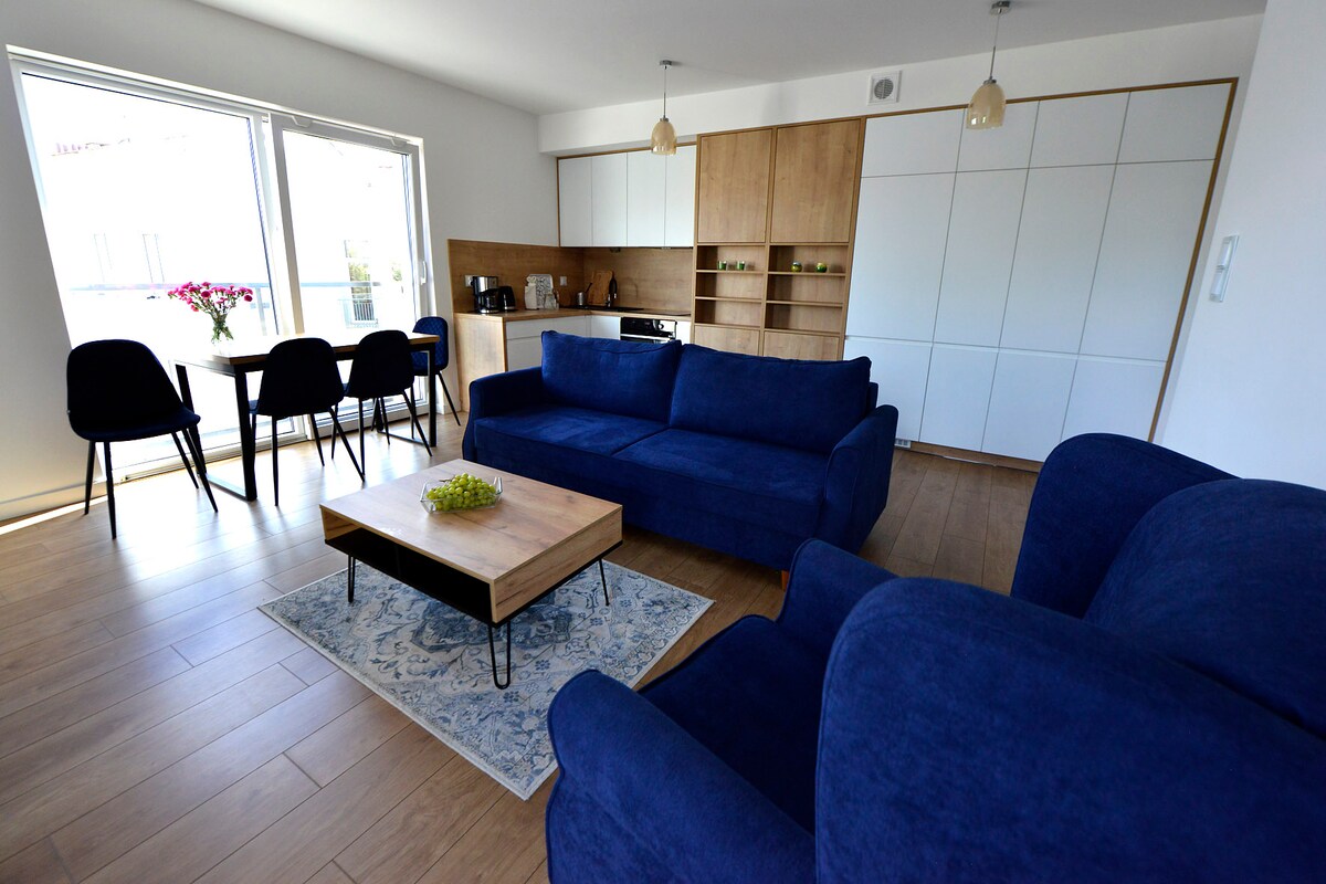 Nowoczesny apartament 40m2 w ścisłym centrum Bielska-Białej. Budynek został oddany do użytkowania w 2022 roku. Mieszkanie jest umeblowane w wysokim standardzie oraz w pełni wyposażone (telewizor, zmywarka, piekarnik, lodówka,). Dzięki dużym oknom apartament jest bardzo jasny i dobrze oświetlony. Mieszkanie składa się z salonu, aneksu kuchennego (wyposażonego w akcesoria kuchenne, ekspres na kapsułki, czajnik), oddzielnej sypialni i łazienki.