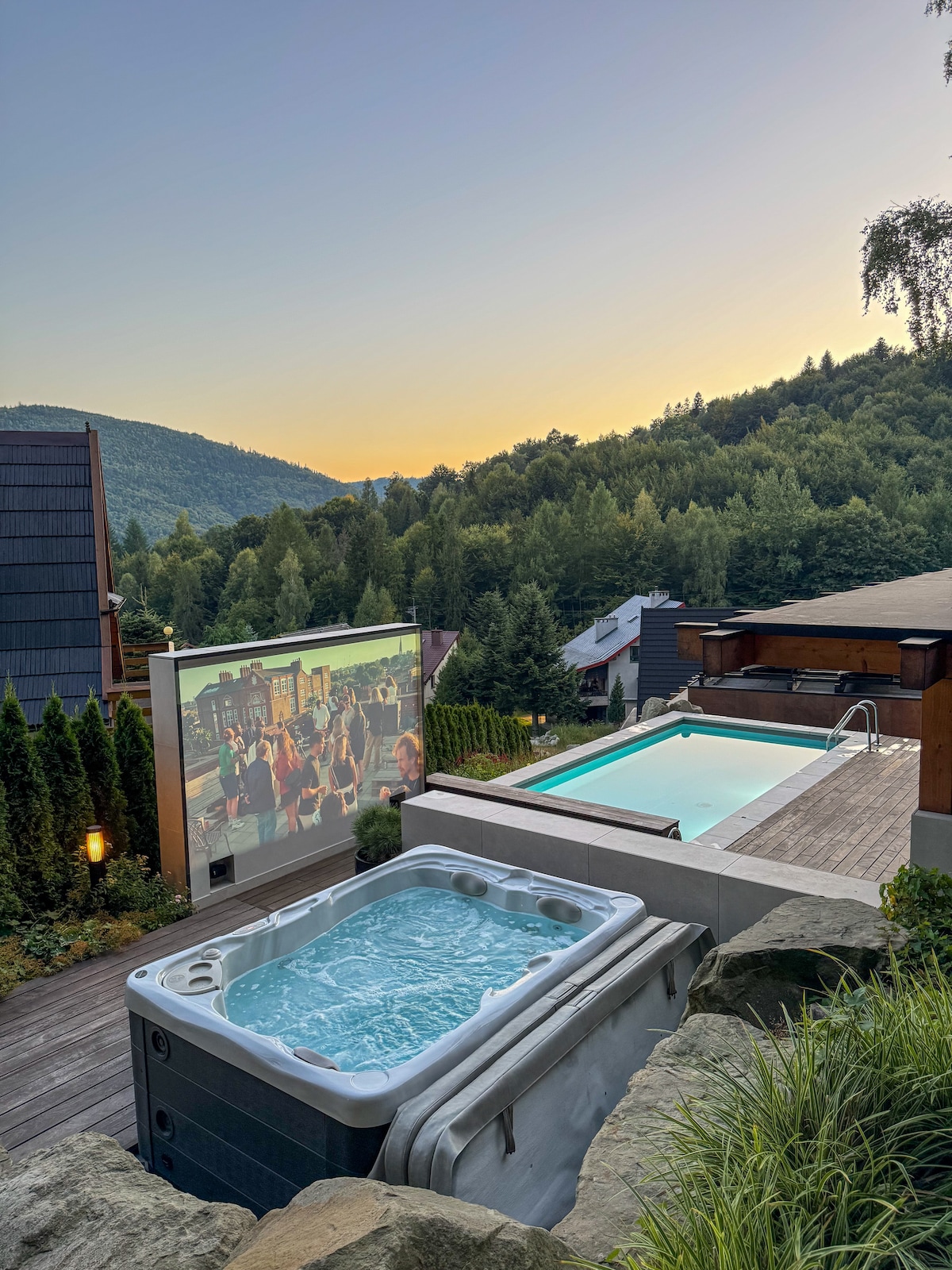 Niebo Beskidu to miejsce na niestandardowy urlopowy wypad. Malowniczo położone na górskim zboczu z pięknym widokiem na Beskidy oraz rozgwieżdżone, nocne niebo. Miejsce oferuje wiele udogodnień, takich jak: odkryty basen wyrastający ze zbocza z pięknym widokiem na góry, kuchnię letnią, kino letnie, jacuzzi czy taras na dachu z teleskopem dla chcących spojrzeć w niebo i leżakami dla szukających chillu.