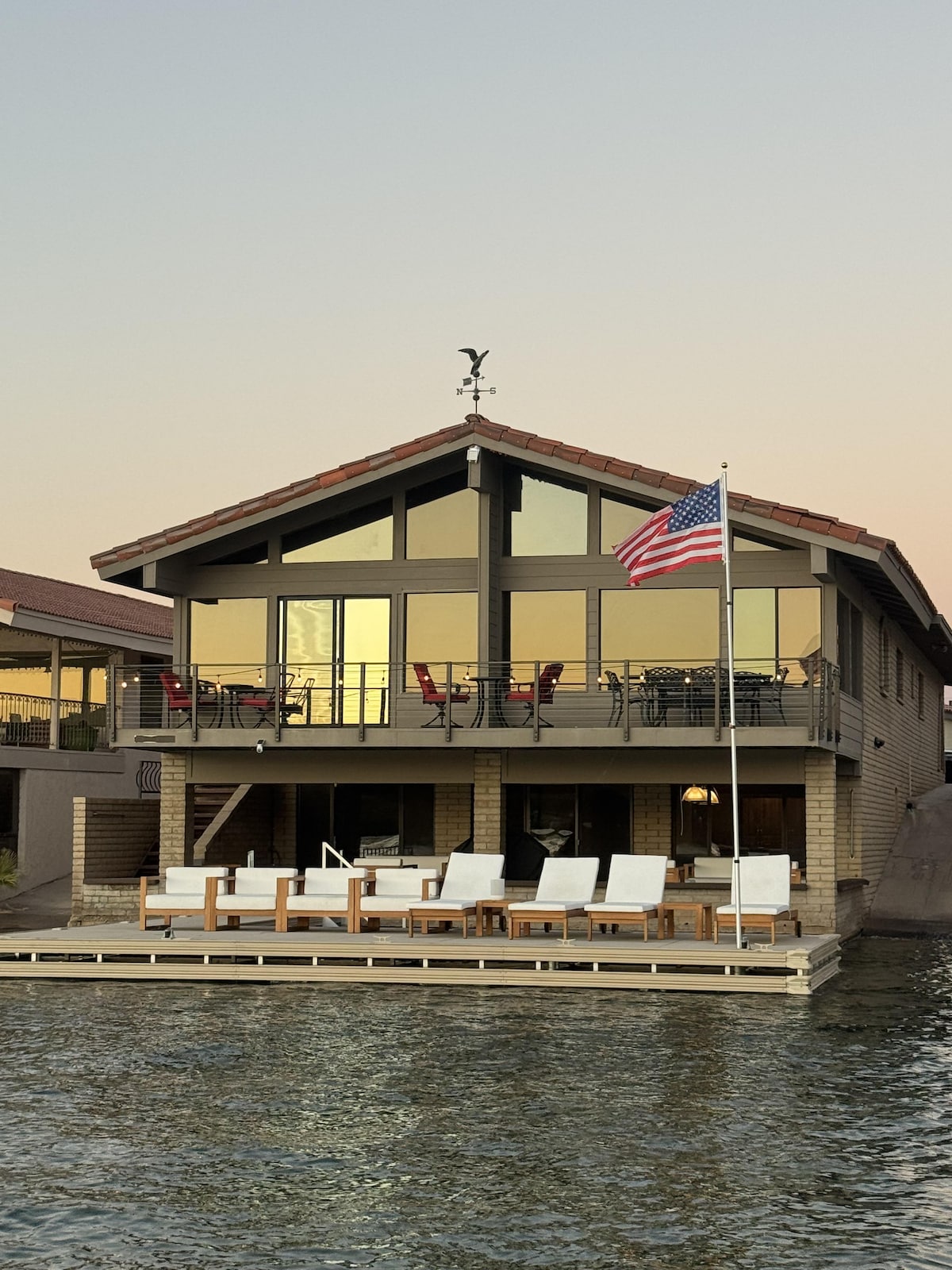 Riverfront Paradise on the Parker Strip. Dock Holiday at Arizona Shores is a timeless riverfront property located on the most desirable area of the Parker Strip with deep water & wide. This former fun riverfront motel has been converted to our family riverfront home and we would like to share it with you. Private docks, riverfront area and fun and comfortable 3 bungalow suites along w/ incredible outdoor riverfront living areas will make your next river trip one to remember in paradise.