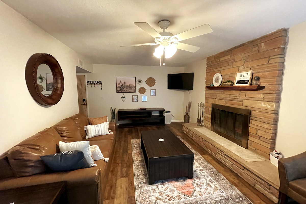 Welcome to your home away from home! This newly remodeled and centrally located condo is within walking distance from the London Bridge, Rotary Park, and golf course. Our condo sleeps four and offers two queen beds (1 queen bed and 1 memory foam mattress). Additional features include TV, free WiFi, electric fireplace, washer and dryer, walk-in closet, and more! The condo community has a pool, spa, picnic area, tennis/volleyball court, and grilling area. Free boat and guest parking available.