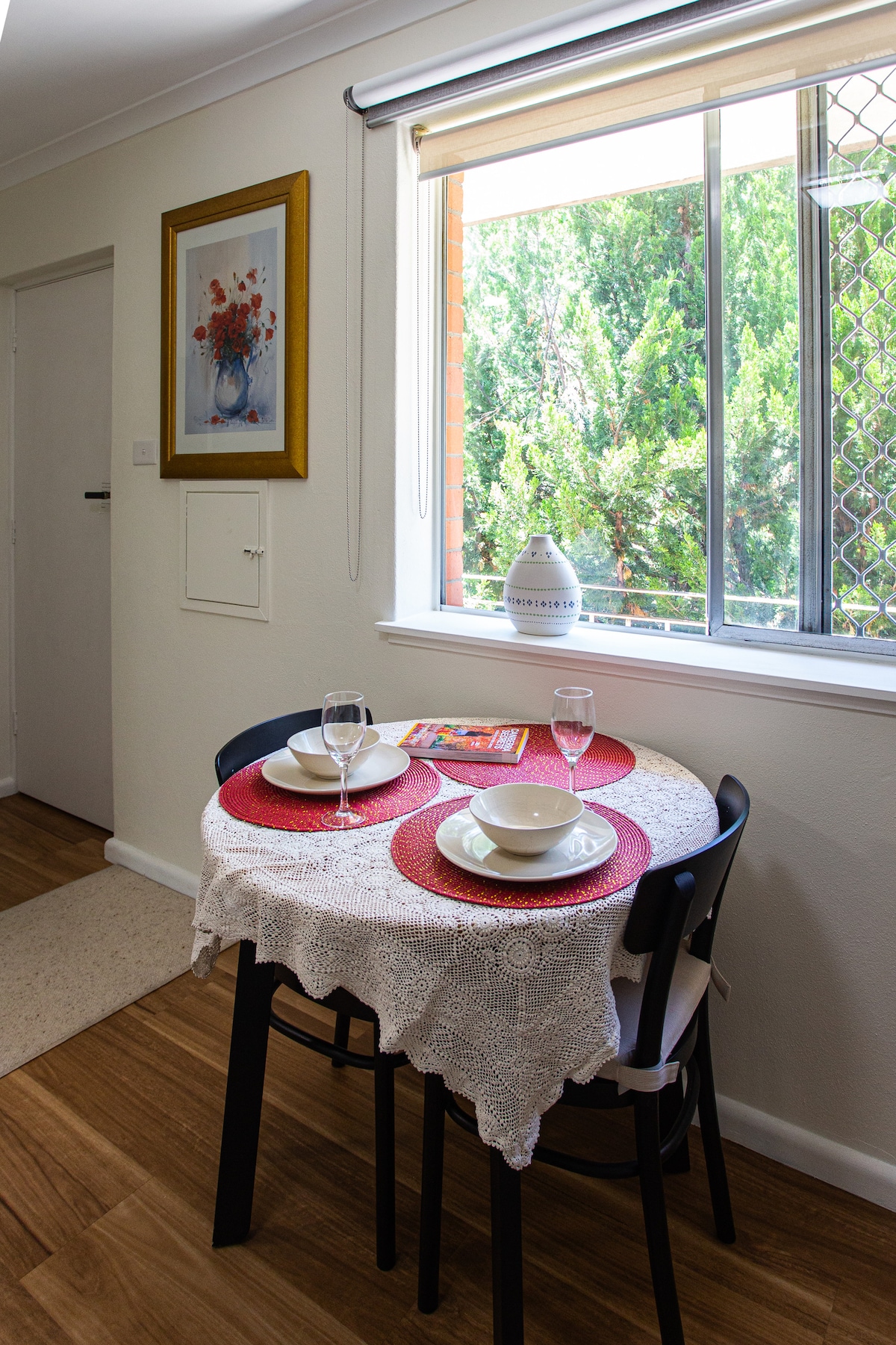 Centrally located, this beautifully appointed north-facing corner apartment is filled with natural light and homely touches. Relax with a coffee and the morning paper in the delightful winter garden, or curl up with a blanket on the soft, pillow-filled couch for a binge (that artwork is a TV in disguise). With all of Canberra’s best restaurants, cafes and shops right downstairs, this luxury one-bedroom apartment ticks all the boxes for a great Canberra escape.