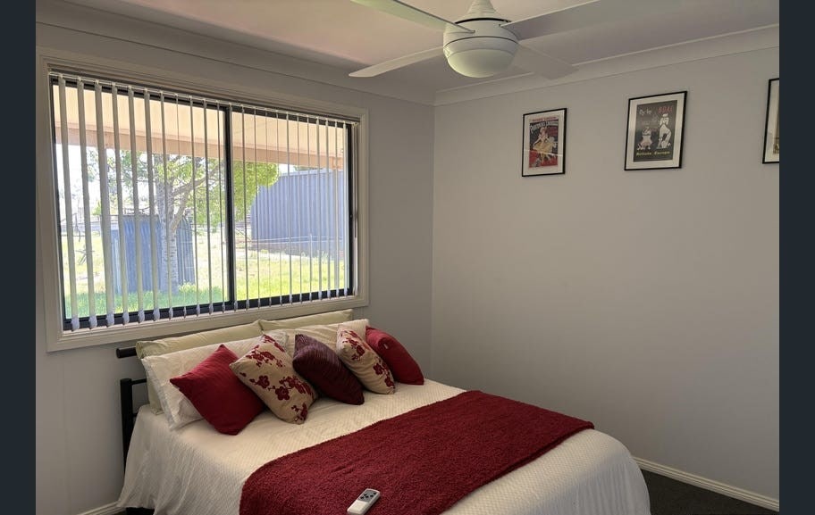 Brand new 4 bedroom, 2 bathroom home with large backyard, double garage, modern kitchen and furnishings. 5 min drive to main street of Parkes. Quiet residential street. Comfy beds, 2 queen & 4 king single beds. Main bedroom with spacious en-suite. Main bathroom includes luxe freestanding bath and light filled shower. 2 living areas, and outdoor dining area and fire pit. Ducted heating & cooling throughout home. Full size laundry with washing machine and outdoor clothes line.