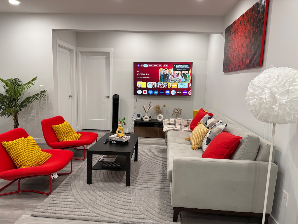 Cozy Cove offers a spacious 2-bedroom basement suite in the peaceful Trumpeter by Big Lake community. Just minutes from West Edmonton Mall, enjoy easy shopping, dining, and entertainment access. The suite features cozy sleeping arrangements, a full bathroom, in-suite laundry, high-speed Wi-Fi, and a Smart TV. With a private entrance, self-check-in, and complimentary snacks, it’s the perfect home away from home for families, couples, and solo travellers.