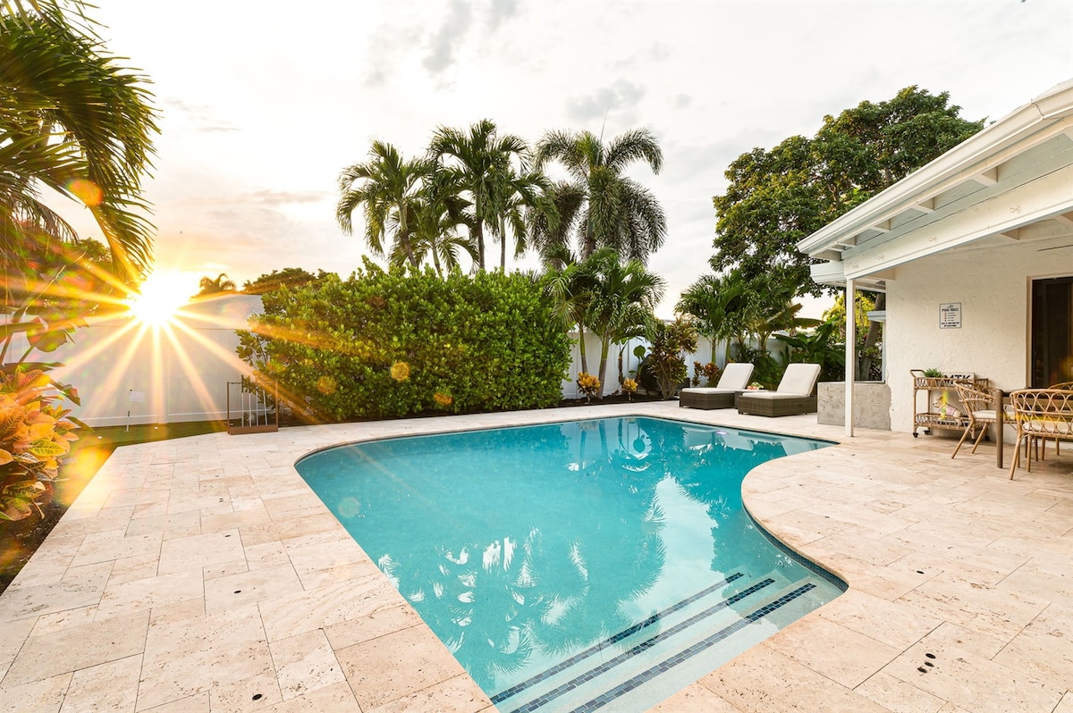 WATERFRONT HOME W/ HEATED POOL & FOUNTAIN, TIKI HUT W/BAR, KAYAKS & BIKES! DIRECT TO INTRACOASTAL W/LUXURY FINISHES & BEAUTIFULLY FURNISHED IN THE HEART OF POMPANO BEACH. THIS HOME INCLUDES 3 BEDROOMS & 2 BATHROOMS & A HEATED POOL! CLOSE TO BEACH, WATERSPORT ACTIVITIES, FINE DINING & UPSCALE SHOPPING. YOUR IDEAL FLORIDA BACKYARD GREAT TO GRILL & RELAX ON LOUNGE CHAIRS WHILE OVERLOOKING THE WATER. 2 KAYAKS INCLUDED!