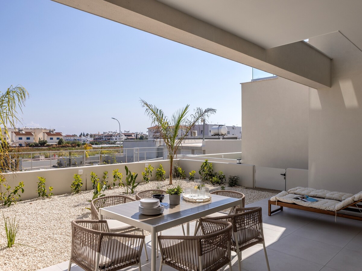 This modern studio apartment is ideally located just a 5-minute drive from the stunning Nissi Beach, in the lively heart of Ayia Napa. Surrounded by a variety of restaurants, supermarkets, shops, cafes, pharmacies, and ATMs, you'll have everything you need right at your doorstep. The apartment includes a fully equipped kitchen for home-cooked meals and offers access to a shared pool and children's playground, making it an ideal choice for couples or families looking for a perfect getaway.