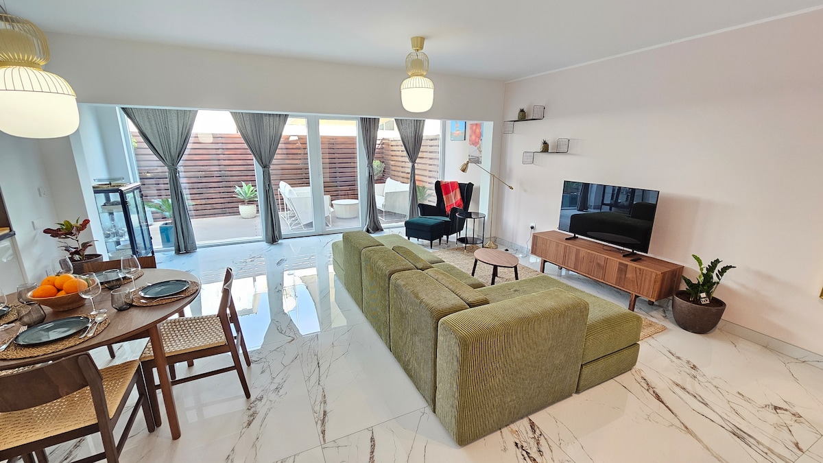 Escape to our new Villa in a gated community near Cyprus's stunning beaches. This 2 Bedroom, 2,5 bathrooms haven offers modern luxury with a private pool, high-speed internet, and stylish outdoor/indoor furniture. Explore nearby restaurants and grocery stores or whip up meals in the fully equipped kitchen. With private parking and beautiful beaches just a 5-minute drive away, your perfect Cyprus getaway awaits!