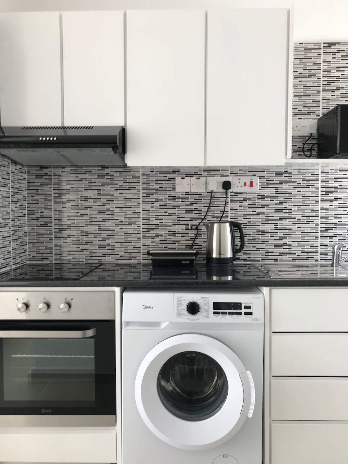 Enjoy the experience at this lovely one bedroom flat at the best location. This is a new built modern flat in a residence complex with balcony where you can sit and enjoy wonderful views of the Mediterranean Sea. All the space is fully air conditioned. You can park easily at apartments private parking space. 5 minutes walk to beautiful sandy beaches & unique Ghost Town Varosha (Kapalı Maraş). Restaurants and bars are in 4 minutes, ancient Famagusta Old Town in 10 minutes walking distance.