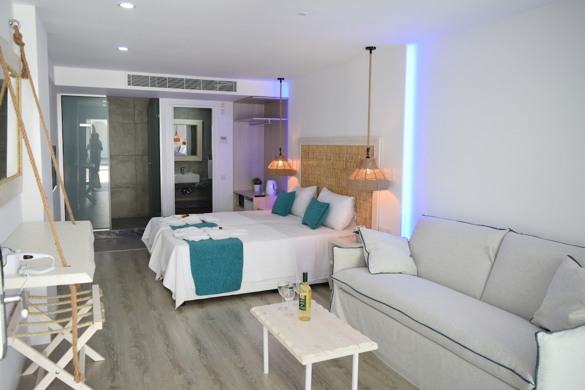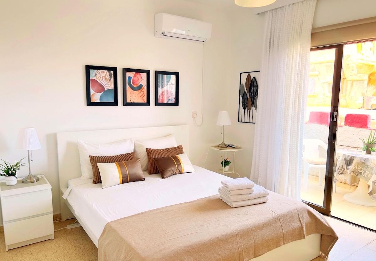 🏖️Luxury Suite Steps from the Beach & Harbor Welcome to your modern seaside escape in the heart of Ayia Napa! This stylish, fully serviced suite,a private terrace, and everything you need for a relaxing stay - just 30 m from the sea and a short stroll to the harbor and Pantachou Beach. Situated at the rear of the building on the ground floor and offers direct access to a vibrant, dynamic area — ideal for young travelers who enjoy an active lifestyle. Some ambient noise may be present at times.