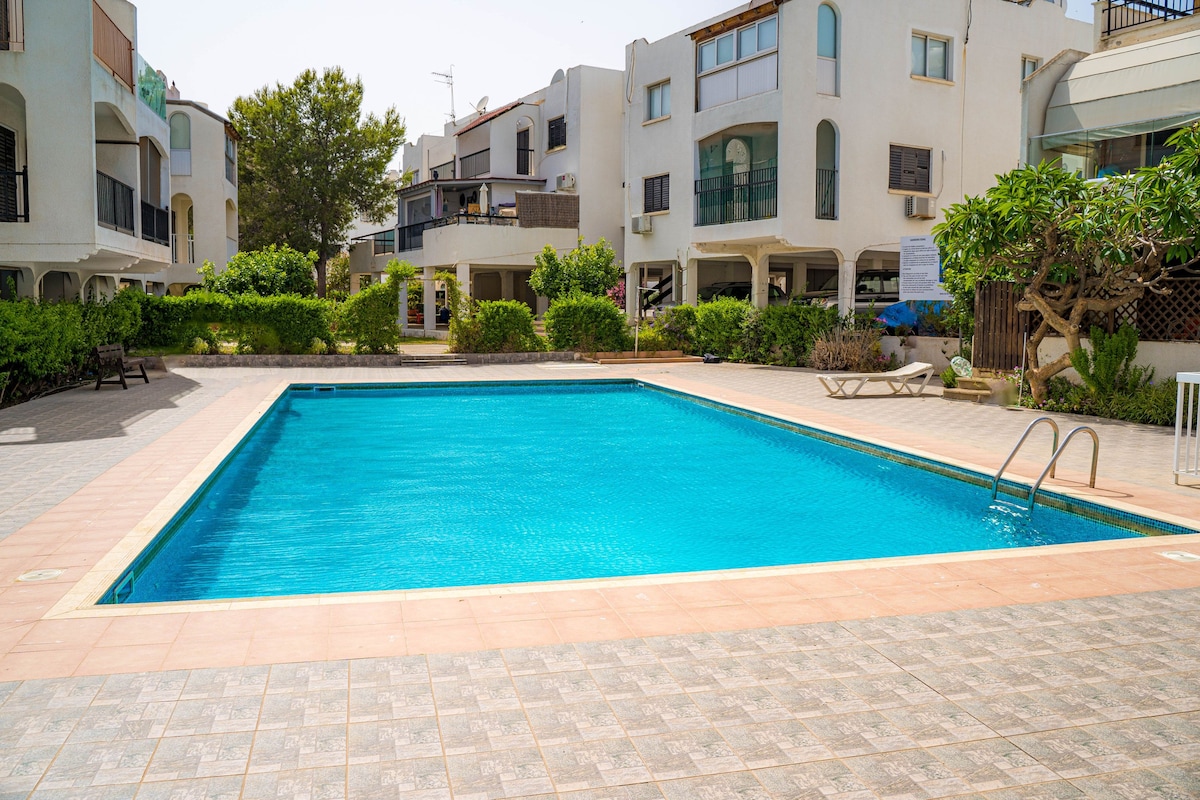family apartment which is located in the heart of the Kapparis resort next to beautiful sandy beaches. Completely renovated in 2023. This apartment is secluded in a small complex with a communal pool just 10-15 minutes walk from 2 equipped beaches Trinity Beach and Malama Beach, as well as 5-10 minutes walk to supermarkets and Tastes Avenue restaurants, 5 minutes to Zorpas 24-hour cookery. A large Metro supermarket is all 7-10 minutes walk. There is a bus stop right in front of the complex.