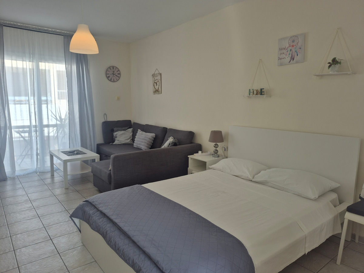 Welcome to our beautiful 1 bedroom apartment with nice sea view, located just a short walk from the center! The apartment features a cozy bedroom, a modern bathroom, and an open-plan living area with a fully equipped kitchenette. Step out onto your private balcony for a glass of wine. Enjoy the convenience of being close to the heart of the city, where you can explore the local shops, restaurants, and attractions. Book now for an unforgettable stay in this prime location!