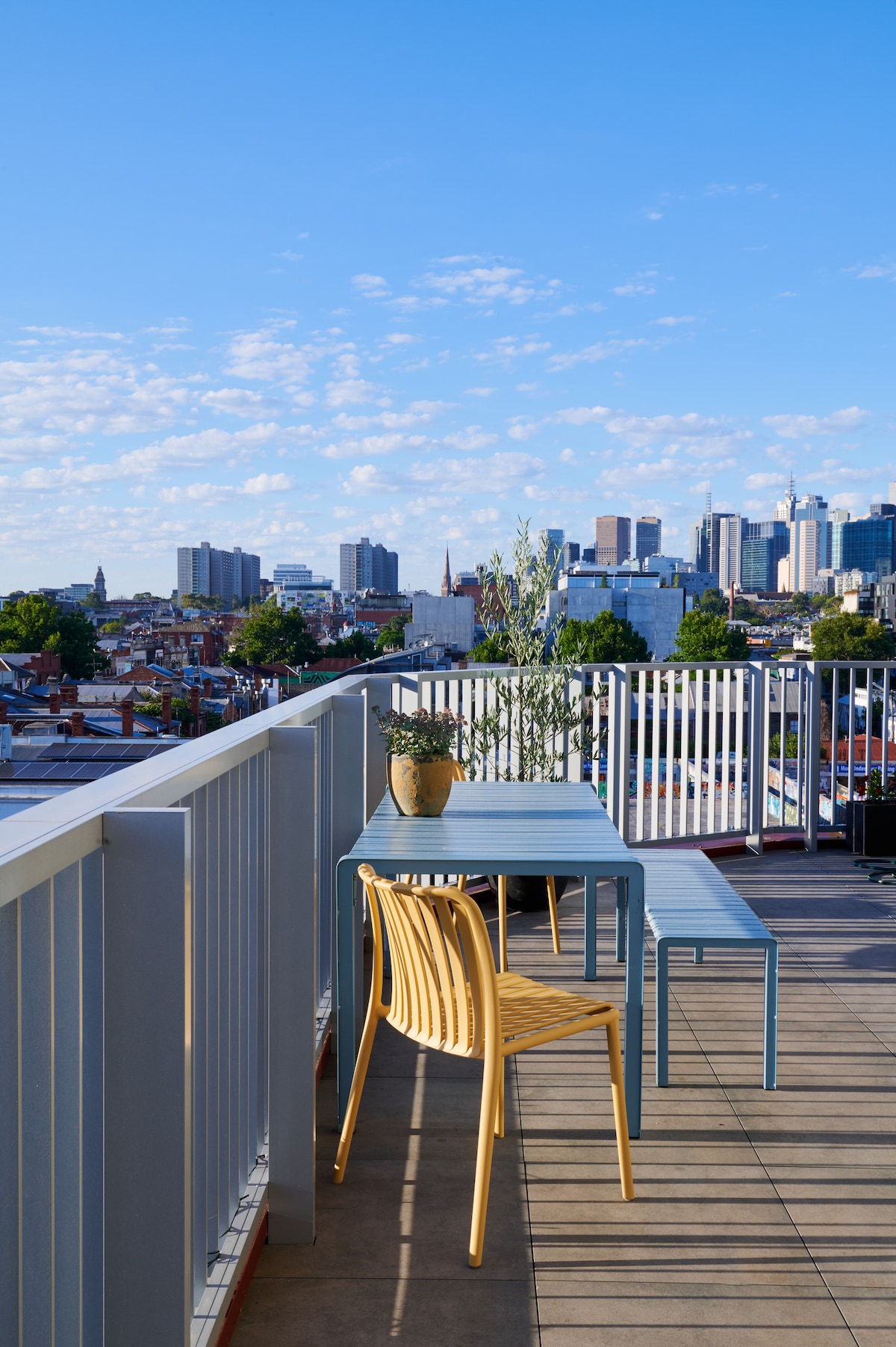 An open kitchen, dining and living area that incorporates a protected sun-drenched outdoor terrace. A big bedroom and a modern sleek bathroom with washer and dryer. New and super comfy bed and bedding and lots of wardrobe space for longer stays. Stylish decor throughout filled with quirky design and happy heathy plants. Fully equipped with quality crockery, cutlery, glassware and every kitchen utensil, pot and pan has been considered. This apartment is set on the border of Fitzroy and Collingwood - meters away from the vibrant Smith St and Brunswick St. This neighbourhood is filled with hidden cafes, restaurants, bars and quirky shops. The CBD is a short tram or bus ride away. In the heart of vibrant Fitzroy and Collingwood, everything is within walking distance. The apartment is on the top floor (5th) of a new and award winning building and every detail has been considered for a complete stay. Overlooking all the little cottages, homes and former factories with views all the way to the mountains. The pictures I've posted here really speak for themselves - you'll feel spoilt in this warm, comfortable home. Ask the host, a hospitality professional, for recommendations of must-go, must-see, and must-eat-at places in this lively neighbourhood. Set on the border of Fitzroy and Collingwood, vibrant Smith Street and Brunswick Street are only metres away. I will check you in personally - 24/7 late in to the night/after midnight - AT NO EXTRA COST. You will just have to inform me and I will be there to check you in. Sometimes, an early check-in before 3pm is available too as long as the cleaners have finished and the apartment is ready.