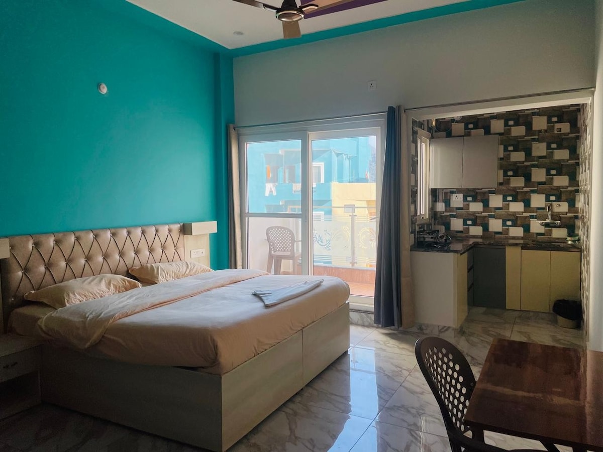This is a private bedroom with private kitchen and bathroom. You will also have access to a bright balcony and rooftop full of plants and home-grown veggies by our family in a quiet, peaceful Rishikesh neighborhood of authentic local vibe. Feel at home in the warmth of a family away from home when staying with us! *** SPECIAL: FREE BREAKFAST + FREE WIFI Extra services: Yoga class , Scooty tour and trekking , walking Temple tour and beach. Cafe tour and Ghats explore