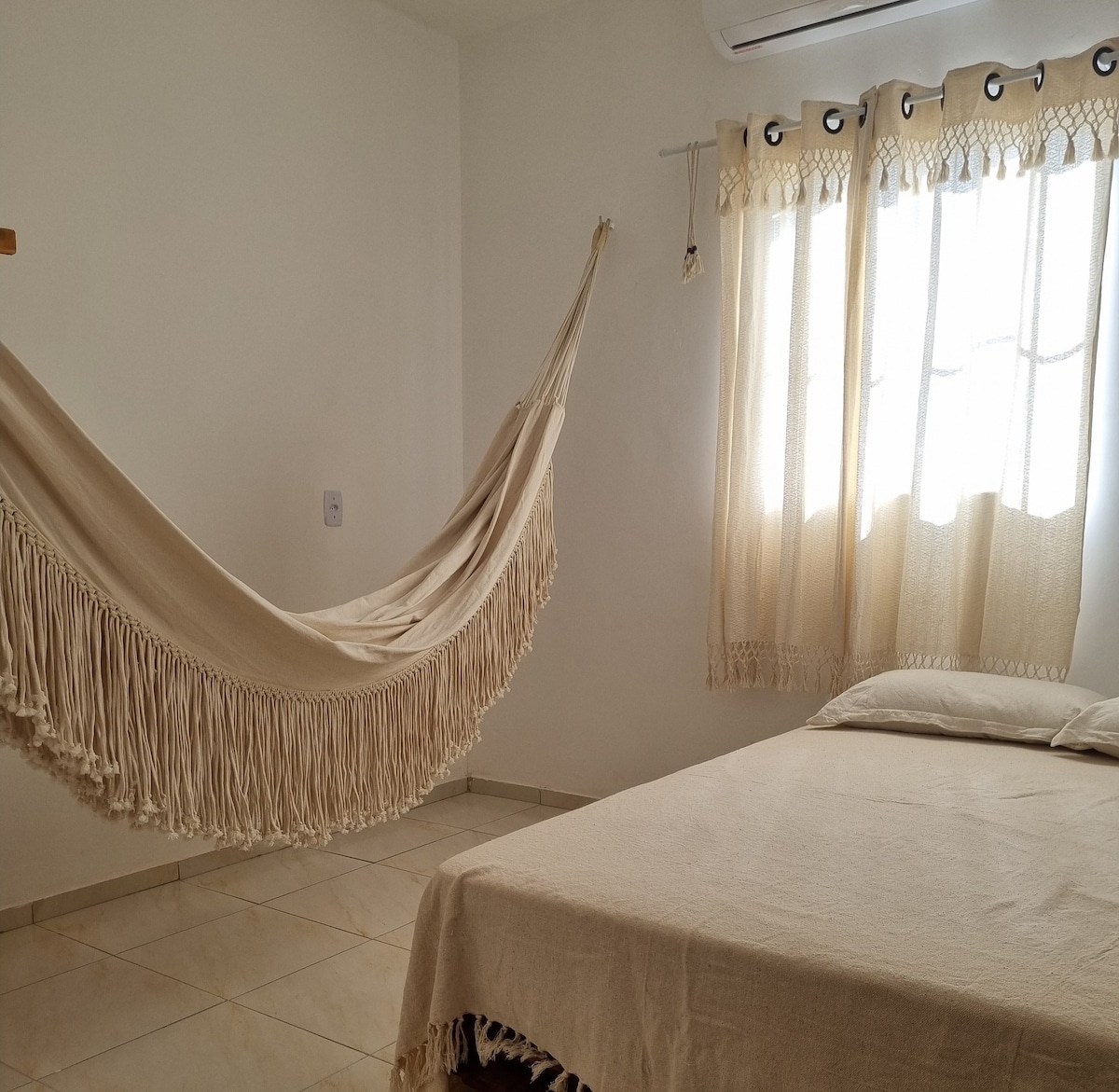 Os quartos foram recentemente aprimorados com ar condicionado, proporcionando um ambiente fresco e agradável para recarregar energias após um dia ao sol. O quarto possui uma cama de casal, com a opção de adicionar cama de solteiro, rede e beliche sem custos adicionais.