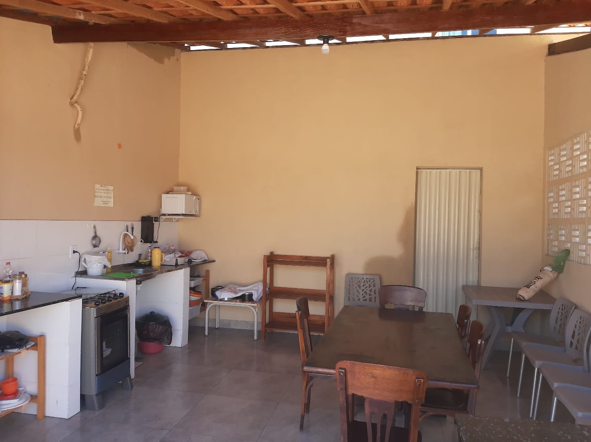 Acomodações para até seis pessoas: duas em cama de casal, duas em armadores de redes dentro do chalé e duas na varanda.