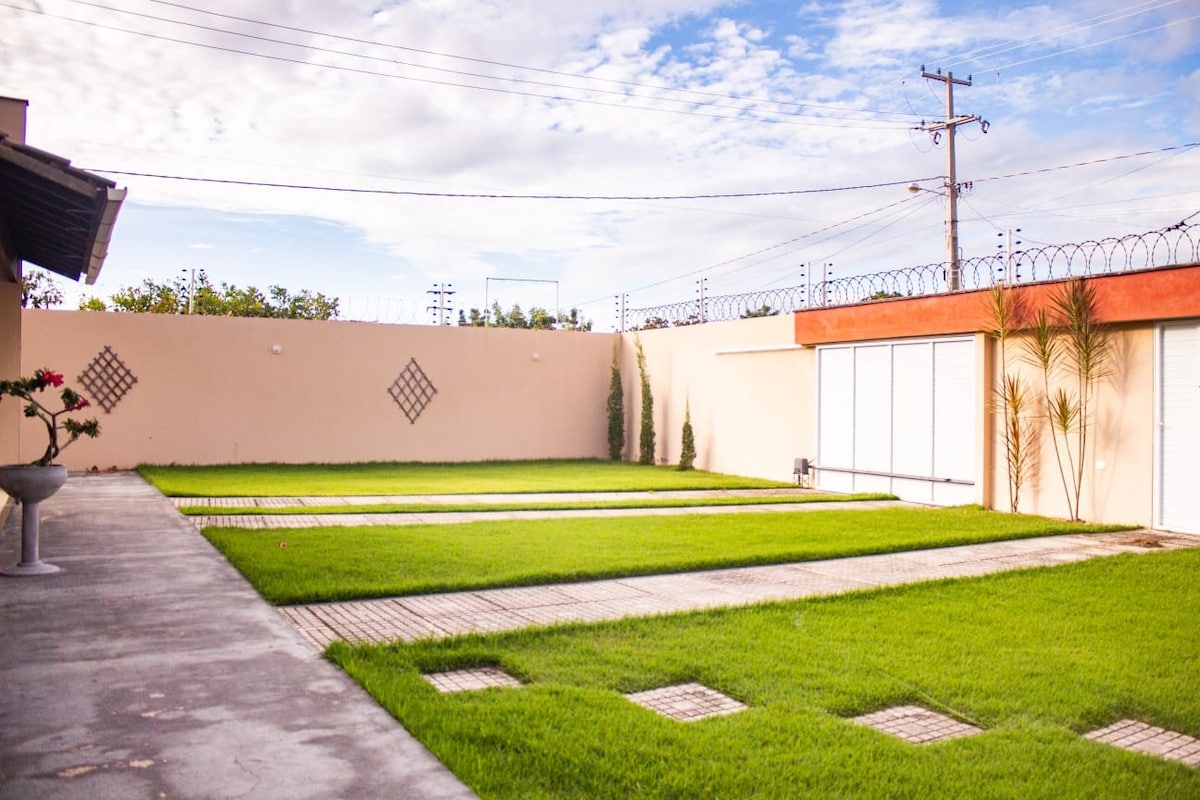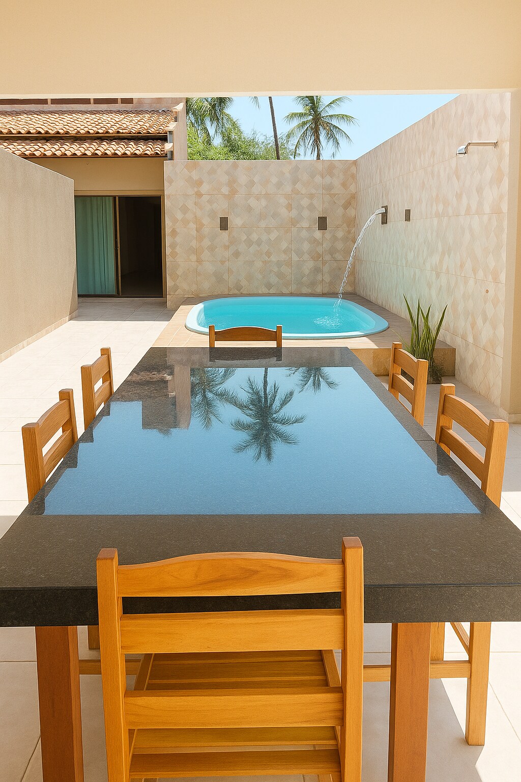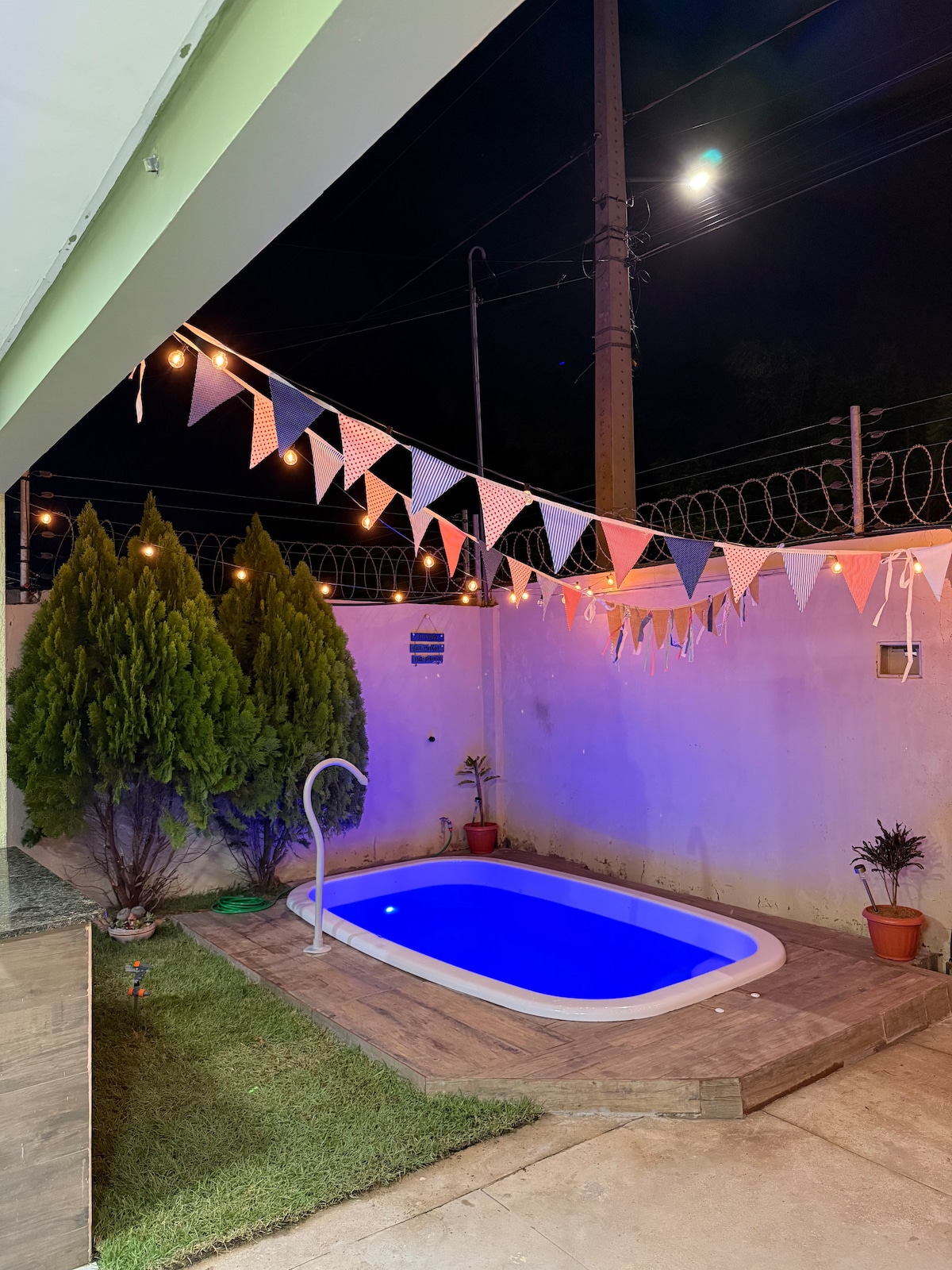 Este espaço você irá desfrutar de uma casa toda mobiliada com uma piscina e área verde. Com uma ampla cozinha completa (microondas, Airfryer, liquidificador, fogão, geladeira e utensílios domésticos). 03 suites, 01 lavabo e banheiro social. Na parte externa da casa com varanda para redes e árvores frutíferas. Um local para descanso e lazer para toda família ou grupo de amigos.