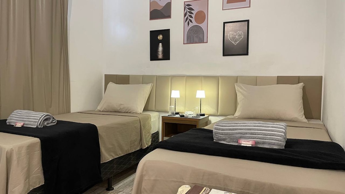 Bem-vindo ao nosso refúgio à beira-mar no coração da deslumbrante Praia de Ponta Negra! Nosso quarto com vista para o mar é o lugar perfeito para desfrutar de uma estadia moderna e relaxante enquanto admira as magníficas águas azuis do oceano. Acomodação Espaçosa e Confortável: - Comporta até 4 pessoas, ideal para casais que desejam desfrutar de uma estadia à beira-mar; - Equipado com uma cama de casal queen-size e 2 de solteiro; - Design moderno e elegante para proporcionar uma experiência relaxante e luxuosa; - Ar-condicionado para manter a temperatura ambiente agradável; - Banheiro privativo; - Serviço de limpeza diária do quarto para garantir que o espaço permaneça impecável e convidativo; - Café da manhã incluso. Venha criar memórias inesquecíveis em Ponta Negra. Estamos ansiosos para recebê-lo!
