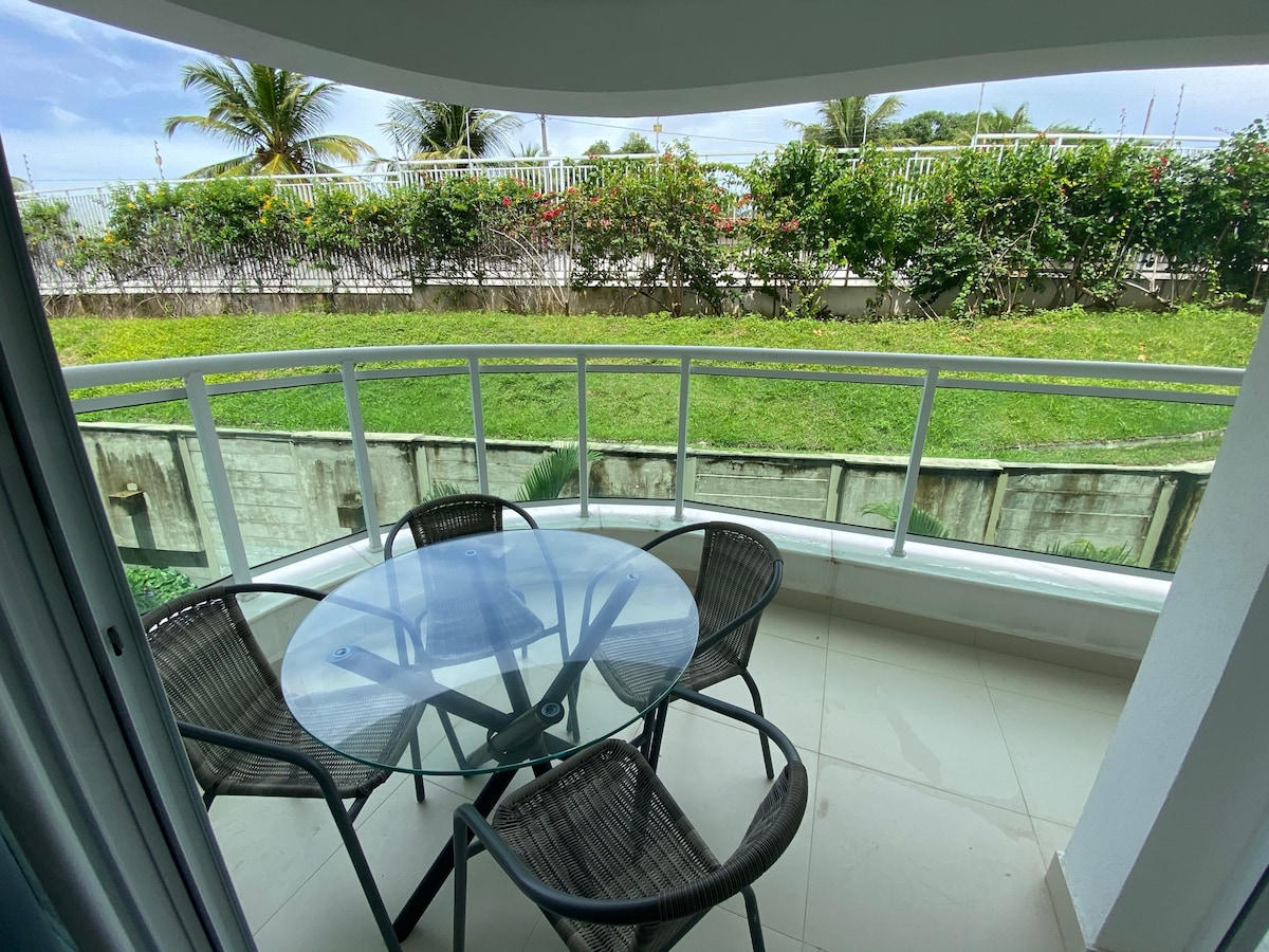 Apto em cond. familiar, (Ar Cond geladeira, microondas, fogão, air fryer maq lavar ,água filtrada, berço portátil, cadeira alimentação) Ampla varanda de onde você escuta o barulho das ondas e o canto dos pássaros. Mas sossego não quer dizer isolamento! Está à 100 mts da praia , Morro do Careca e com acesso a tudo que você precisa: Supermercado, farmácias, banco 24h, bares, restaurantes, e ponto de ônibus ao lado do condomínio. Volte ou venha conhecer essa estrutura Maravilhosa feita para Você!