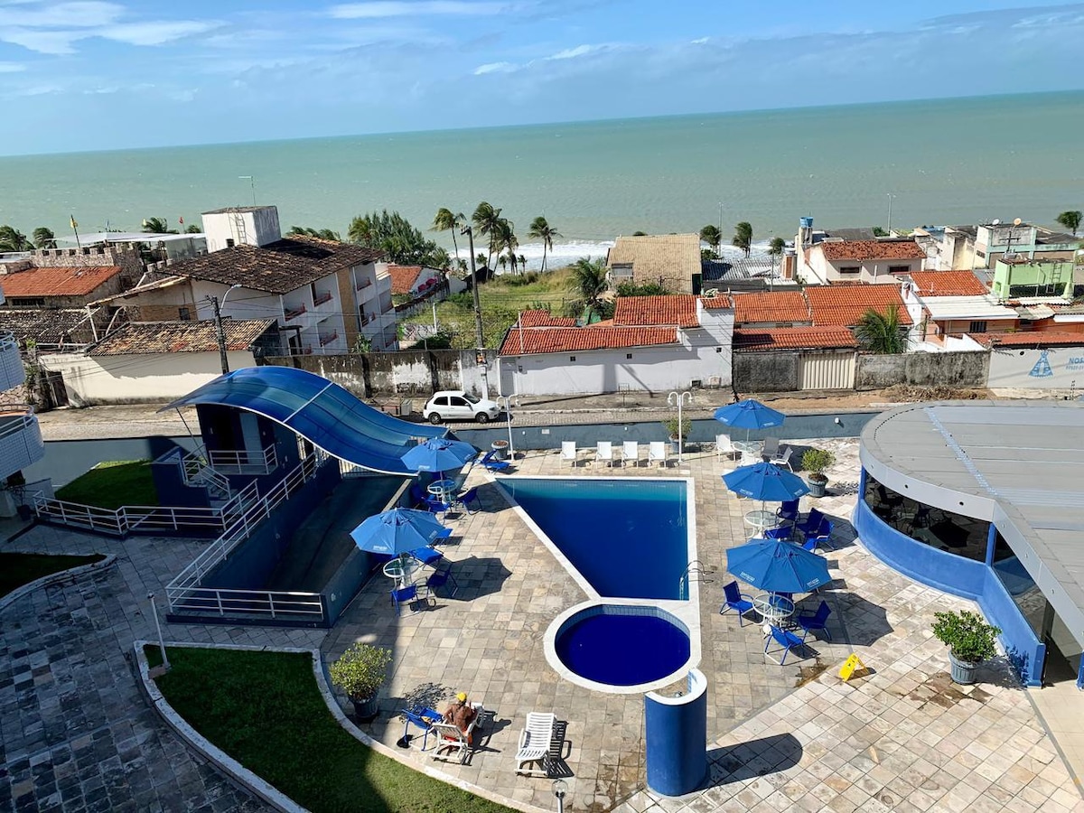 There’s a progressive discount starting from 2 nights. Comfort with a sea view, apartment with a bathroom, double bed, and hammock in Ponta Negra, one of the most beautiful beaches in Brazil. The location is close to transportation, offering easy access in a hotel with full, elegant infrastructure, providing well-being for those needing relaxation or on a business trip. The hotel features extensive amenities, including a 24-hour restaurant, pool, sauna, gym, reception hall, and event room.