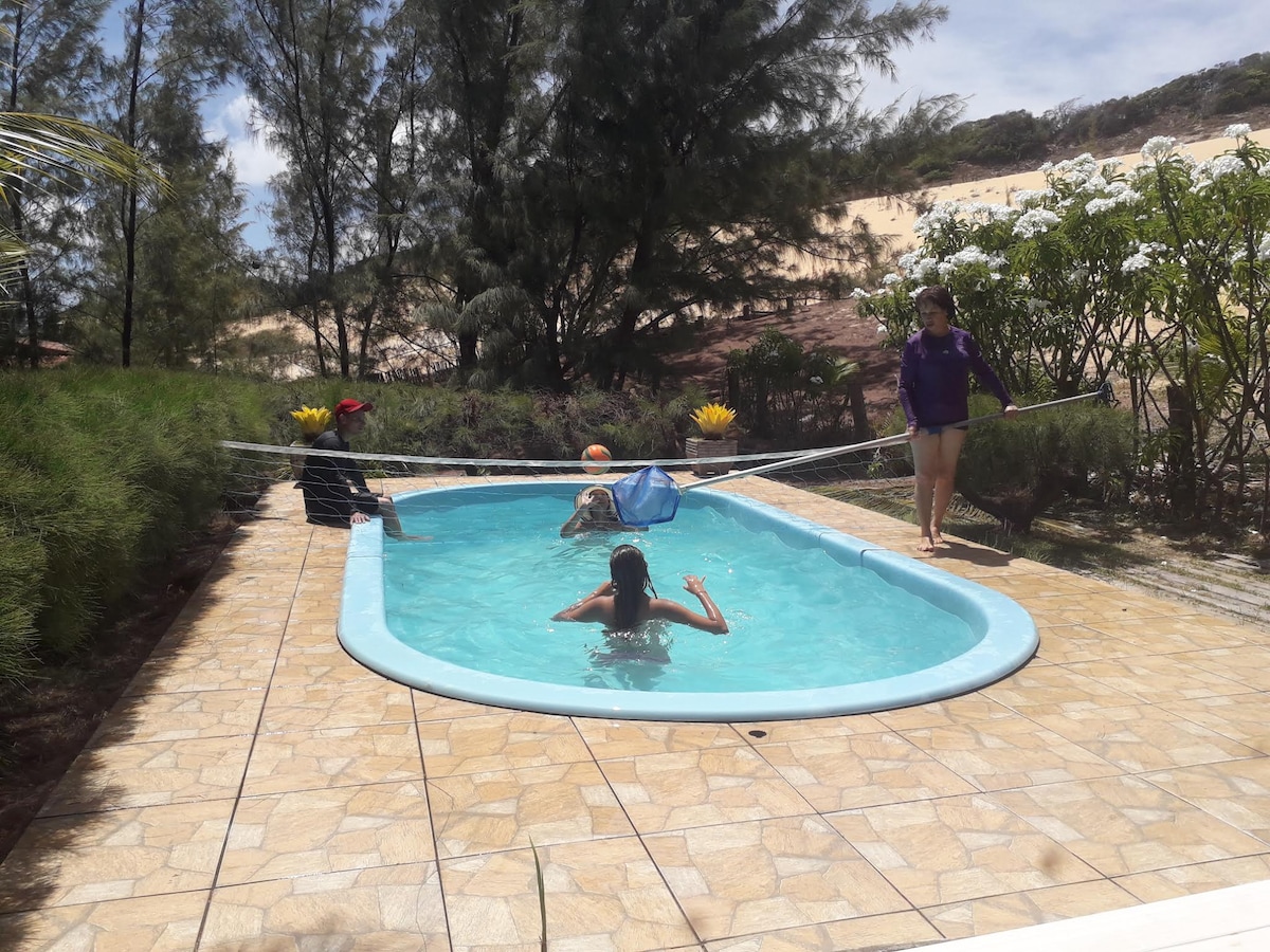 Casa de praia espaçosa em Pirangi do Sul. Próximo de lagoas, praia, e do maior cajueiro do mundo. A casa possui piscina ampla, bastante espaço para estacionamento, além de área de churrasqueira e rede de vôlei. Possui 4 quartos, 3 banheiros, cozinha completa, área de churrasqueira equipada com geladeira, fogão, mesa com 14 lugares. Tudo que você precisa numa casa de praia!