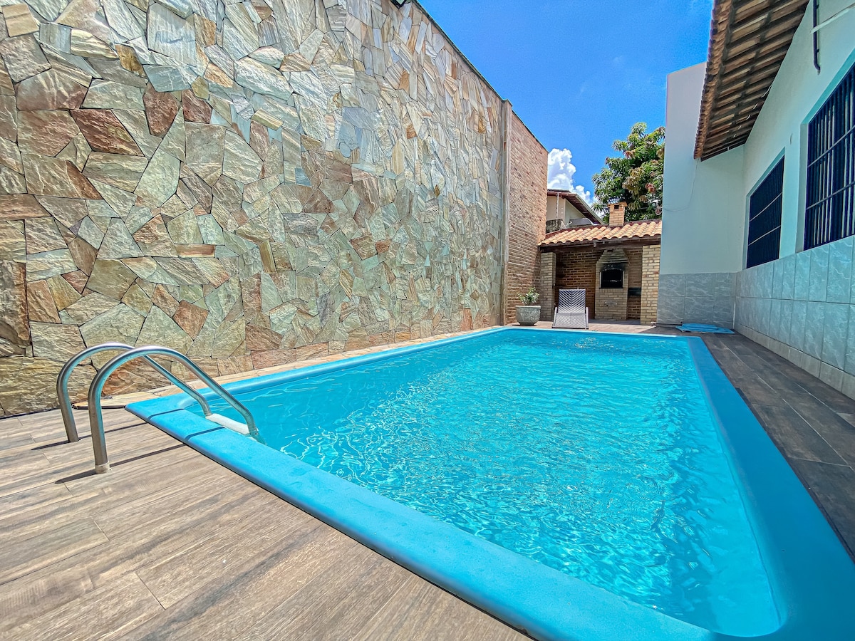 Piscina aquecida, churrasqueira, 5 suítes