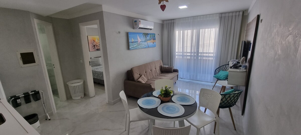 O apartamento está localizado no Ponta Negra Beach Flat em Natal, na Praia de Ponta Negra. O condomínio à beira mar possui academia, piscinas adulto e infantil, restaurante e bar, além de acesso privativo à praia e garagem coberta inclusa. O quarto conta com uma cama Queen-size, e mini-copa (com frigobar, microondas, louças e talheres) para refeições rápidas.