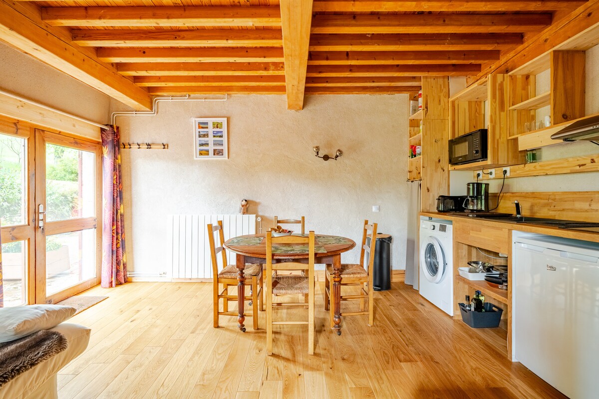 Studio de 30m², état neuf, entrée indépendante, au calme avec coin jardin privatif. Sentiers de randonnée au pied de la maison et nombreux points d'intérêt touristiques à proximité. Pleine campagne, sans vis-à-vis, le réveil est assuré par le chant des oiseaux. Avec un peu de chance vous pourrez être témoins de magnifiques couchers de soleil ! Nous possédons un coq et des oies... Boulangerie, pharmacie et restaurants à 8 mn et grande surface à 10 mn.