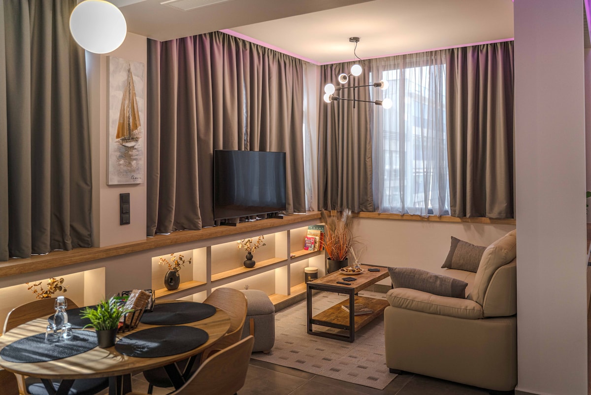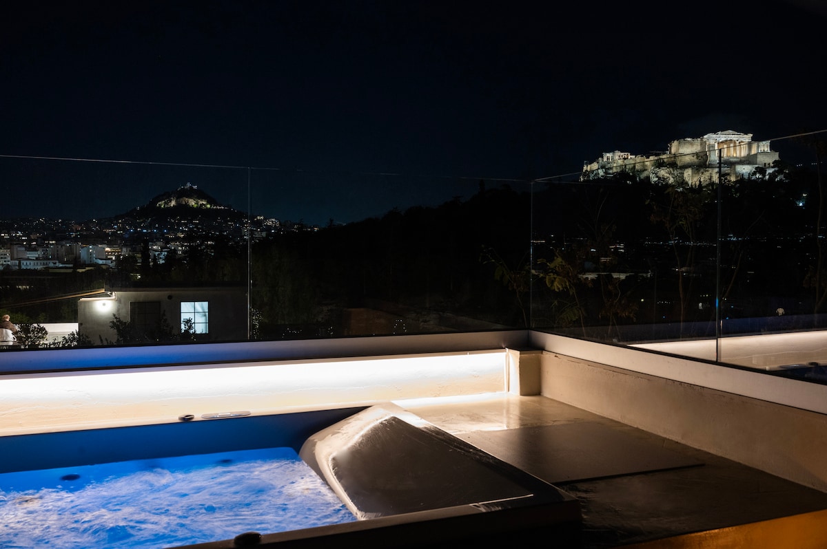 Acropolis and city views, high-end, 55m2 apartment, located 12' walk from Acropolis ★ Jacuzzi ★ Terrace ★ Balcony ★ King size Bed ★ Luxury Full Bathroom ★ Wi-Fi ★ A/C ★ Smart Netflix TV ★ Nespresso coffee machine Our Jacuzzi is private & heated, and can be used throughout the year. Safe, central neighborhood, 5' walking distance from the metro, sights, local restaurants, cafes and shops. *** No Parties / Events of any kind are allowed ***