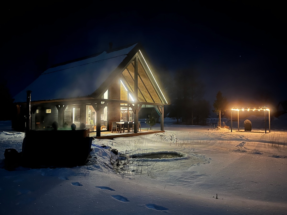 A modern holiday home for up to 8 guests, located near the sea just a little over 200 meters from the shore and surrounded by nature. The house features large panoramic windows, a stylish thatched roof, and a bright open layout. Guests can enjoy a spacious sauna, a hot tub, and a swimming pond, making it a perfect getaway in every season. Ideal for families, couples, or groups seeking peaceful accommodation.