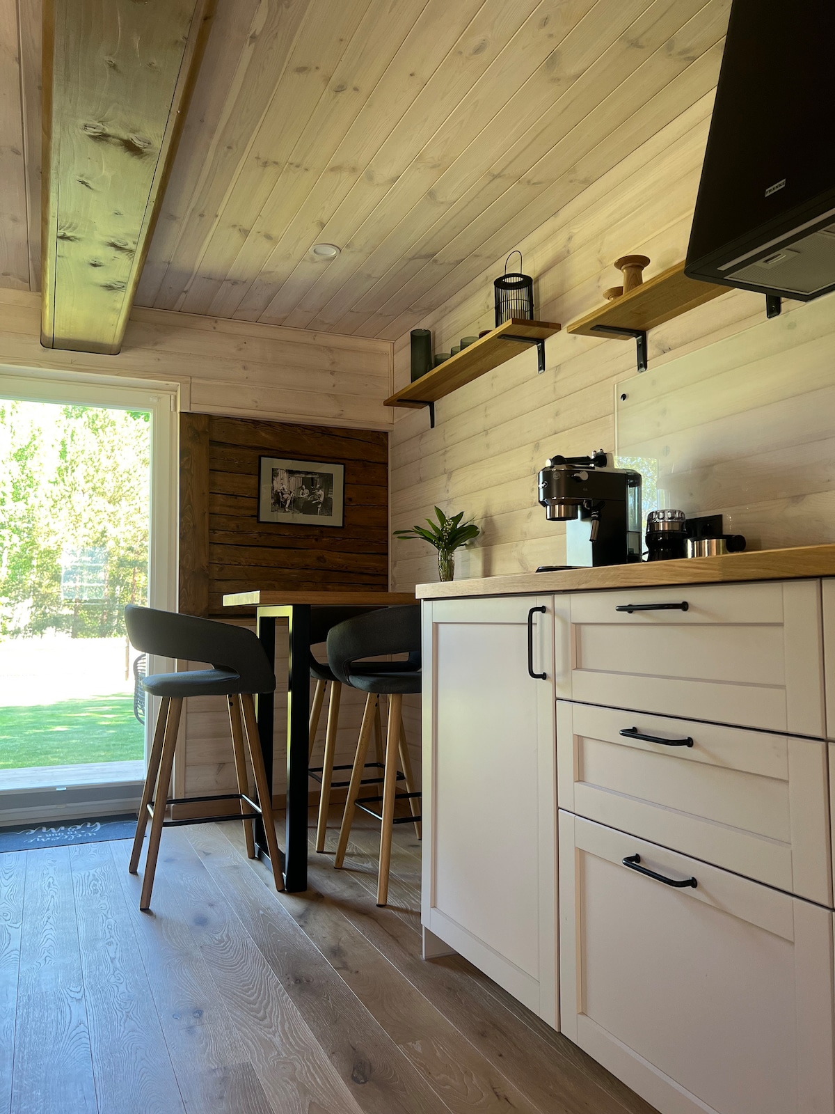 Fully renovated cottage that dates back 100 years, is restored with original beams and wooden lats left exposed as design elements. This self-contained cottage is a tiny house in the garden of a family home. Private, compact and quiet with a terrace facing evening sunset and a short walk away from the beach. It’s a perfect place to stay if looking to get away and enjoy nature, or if visiting Lottemaa and looking to stay just a short walk away from the amusement park. Free parking included.