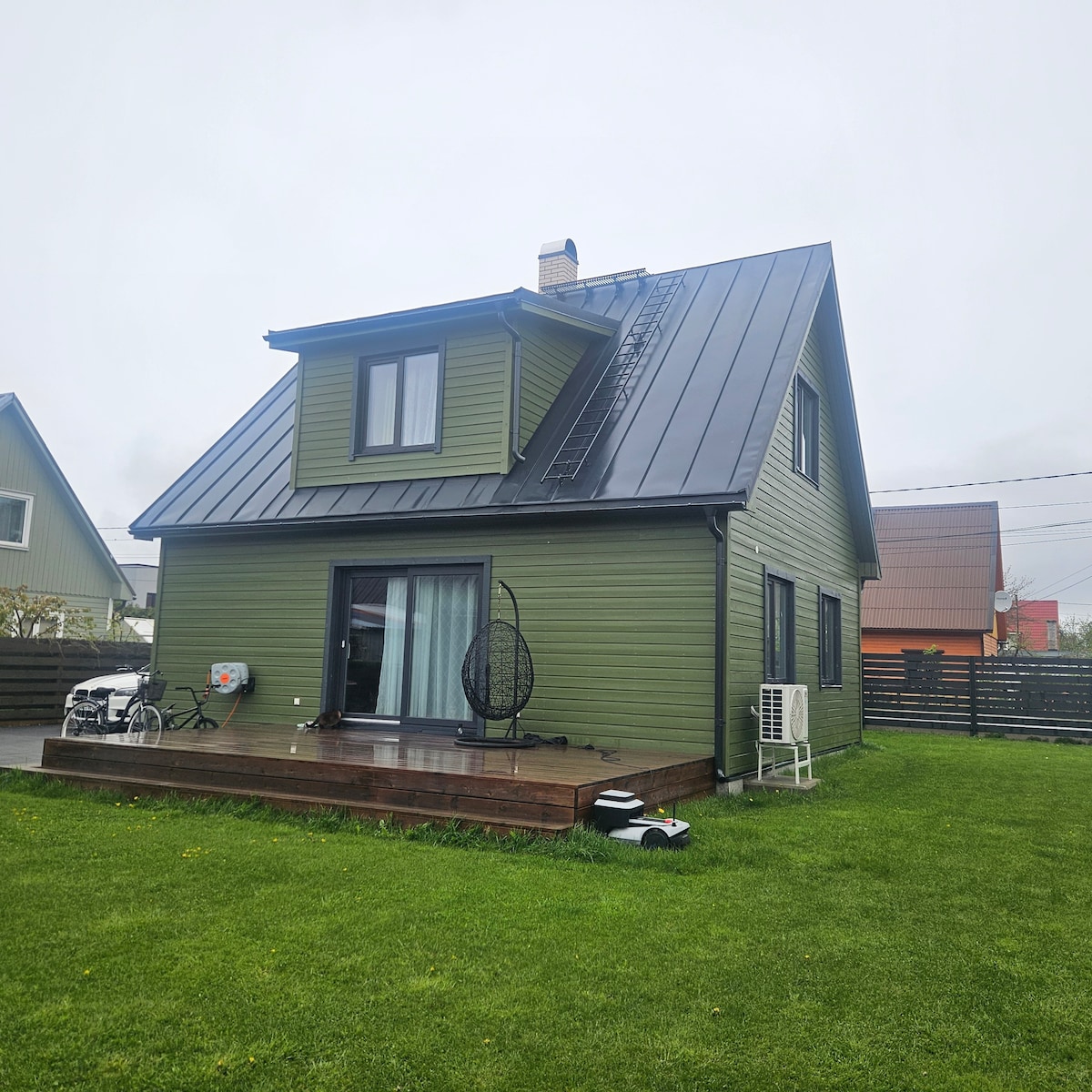 Uus ja hubane eramaja Pärnus – Täiuslik puhkus mere ja linna läheduses Maja omadused: • Hea saun: Lõõgastu meie mõnusas saunas, mis pakub ideaalset puhkuseelamust, et alustada või lõpetada päeva lõõgastumisega. • Terrass ja grill: Suurepärane koht hommikukohvi nautimiseks või õhtul grillimisõhtute korraldamiseks. Naudi värsket õhku, päikesepaiste ja meie koduõue rahu. • Rattad kasutamiseks: Meil on olemas rattad, millega saad avastada Pärnu ümbritsevaid kauneid radu ja randu.
