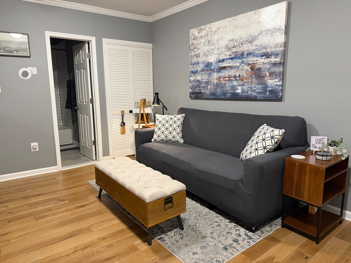 平均评分 4.98 分(满分 5 分),共 389 条评价位于历史悠久的联排别墅中的迷人1卧室公寓,带停车位
