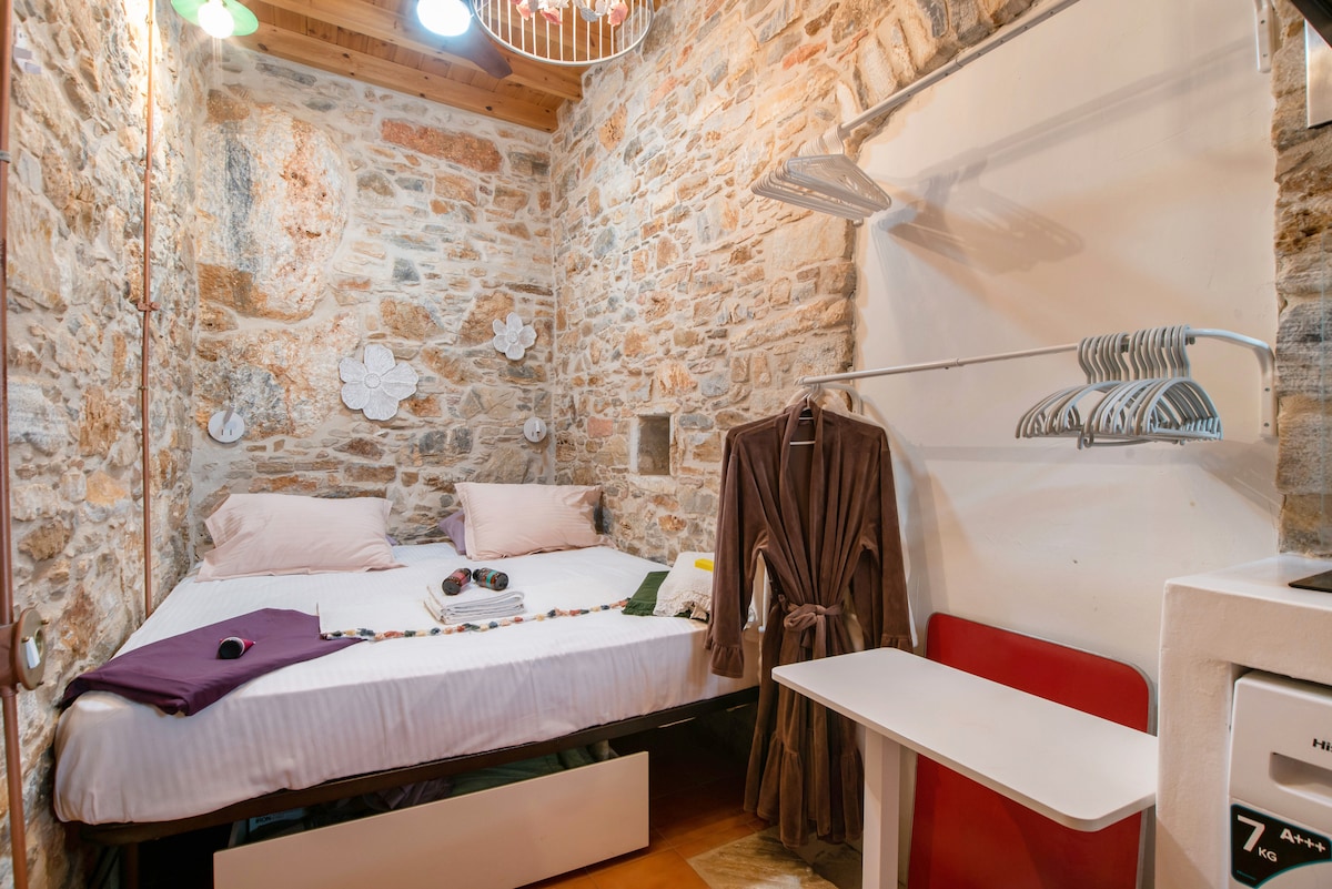 Villa Caterina is one house 50 m2 with spectacular view. It can accommodate 4 to 6 people. Entering by its private entrance to the enormous terrace of the villa that you enjoy your lunch/dinner by watching sunsets and sunrises. It is fully equipped has a spacious living room / sitting area that also has 2 single beds, a new kitchen with all appliances feels like home. There is also Master bedroom and a bathroom. It can be given with a guest room that can accommodate a 2 people.