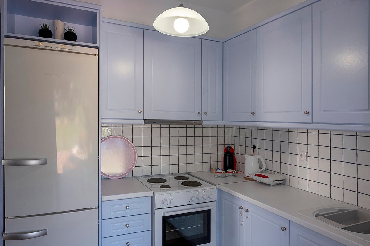 BLUE MAISONETTE is a three-level house with 3 bedrooms (a twin bed, two single beds, three single beds), 2 bathrooms, one plan kitchen-living room. It can accommodate a maximum of 7 people .On the upper floor, you can enjoy a view of the port of Paros and on the ground floor level, you will find a fully equipped kitchen with a living room around the fireplace. You can also enjoy our porch with direct access to our garden