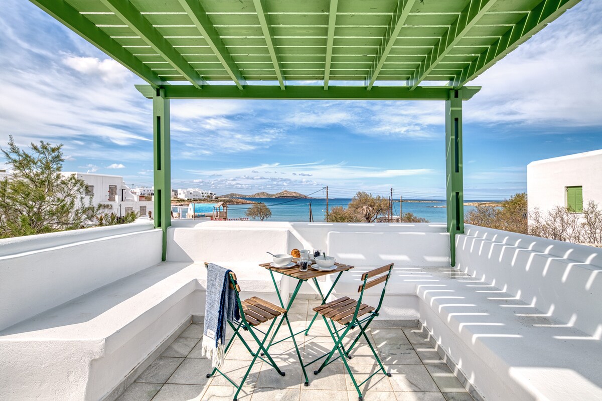 Ideally located in the beautiful village of Naousa facing the beach of Anargyri. May Lola is a holiday dream beach 2 rooms apartment just meters away from turquoise waters and few meters away from delicious taverns. entirely renovated June 2021! 2 queen size beds for 4 adults 1 in bedroom and one in main room rooms are separated with a door. we have A.C in each room.