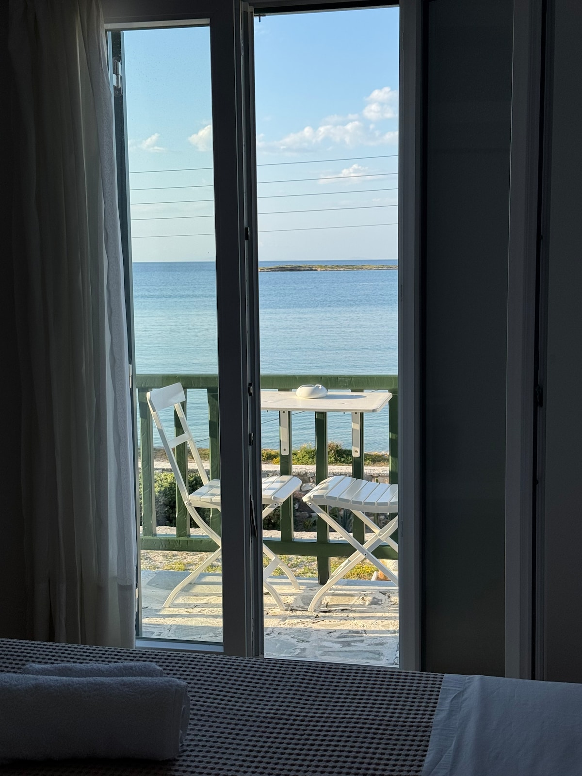 The Superior Apartment by the beach is on the top floor of a building which is located inside the sea … It provides one living room with a fully equipped kitchen , one bedroom and two bathrooms. The living room has sea view to Aegean Sea and to Naxos island . The bedroom has sea view all over the beach of Piso Livadi and the traditional pier . Enjoy your holidays almost on board!!!