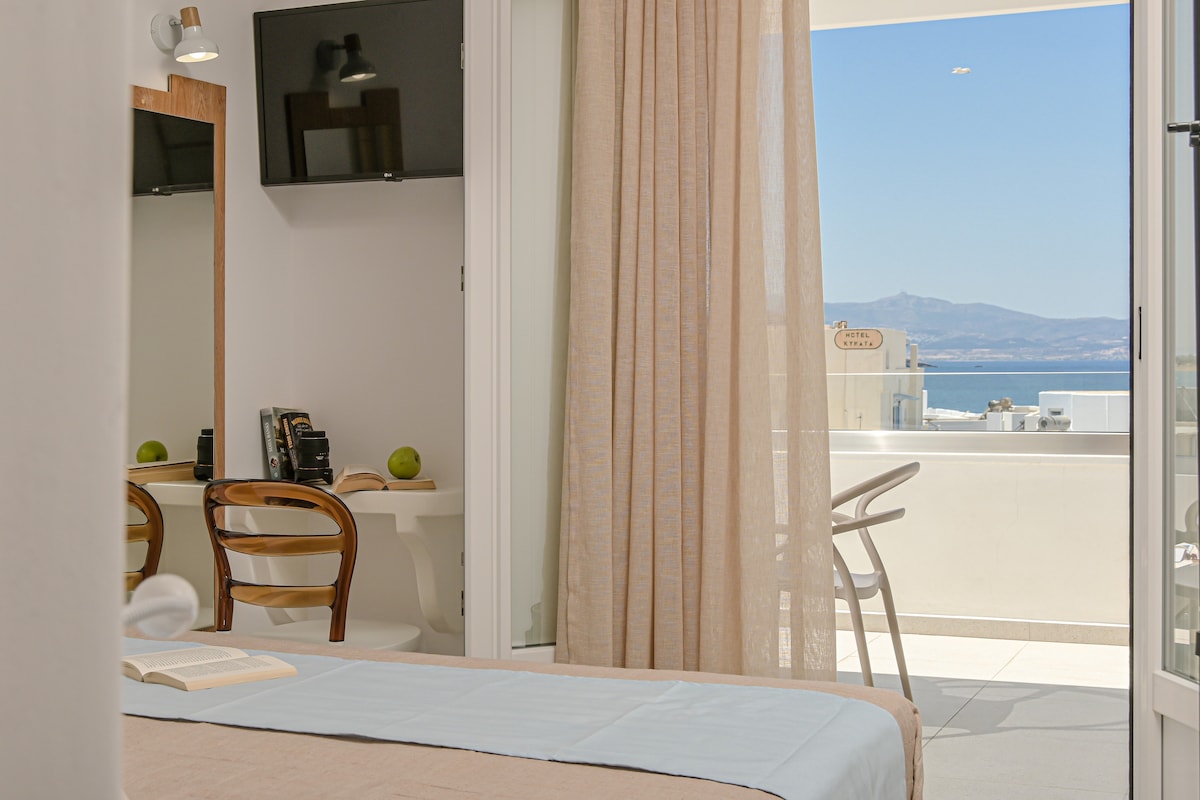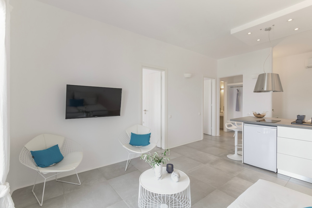 Welcome to Alonia Suites! This cozy double studio is perfect for two, complete with a built-in double bed that’s as comfy as it looks. Whip up a quick snack in the kitchenette, or just chill out on your private terrace with a glass of local wine. The Wi-Fi is fast, the air conditioning is cool, and the vibes are just right. Plus, you’re just a short walk away from the heart of Naoussa . Your Greek island escape starts here!
