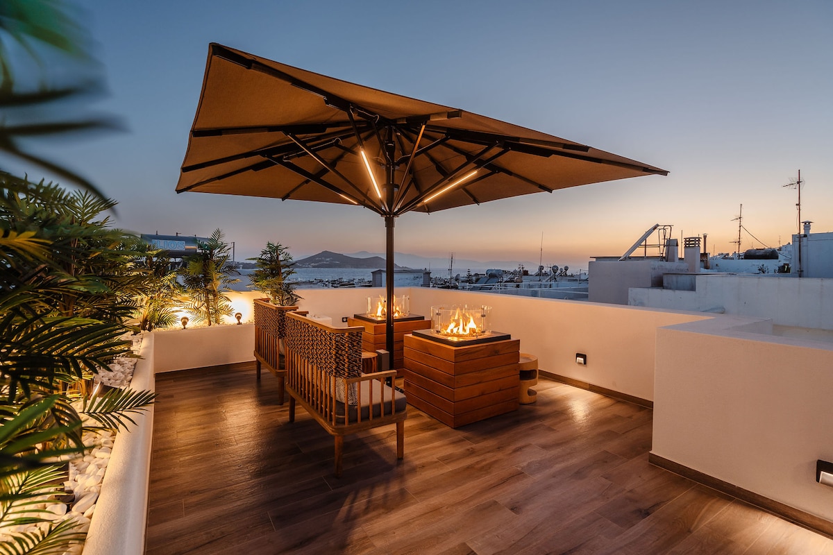 With a view of the city, the castle and the old town of Naxos, the roof garden of the accommodation will offer you unforgettable images, especially at sunset. The accommodation is located right in the center of town, with easy access on foot to the most important attractions of Chora, the Temple of Apollo (Portara), the Castle of Naxos and the Archaeological Museum of Naxos, as well as shops and more. It is fully equipped with everything you need to have a comfortable and beautiful stay!