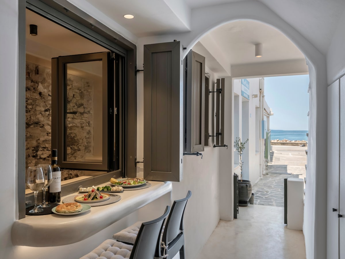 The apartment is located right at the center of Paroikia, inside of the old market street, giving you access to almost anywhere. The port is just 4 to 5 minutes walking distance from the apartment, so are the parking lots, the bus station, numerous stores, coffee shops, bars, bakeries and supermarkets for your groceries shopping. Last but not least, you can even visit three different beaches just by walking a few minutes.