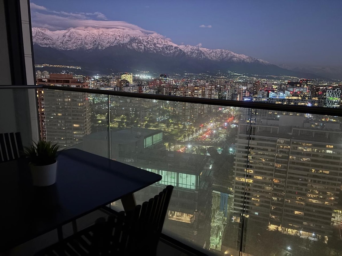 Bienvenido a nuestro encantador apto. en Las Condes. Ubicado en uno de los mejores barrios de Santiago, MUT a solo pasos y Costanera Center a 5 minutos caminando. Cerca de restaurantes, tiendas y atracciones turísticas. Encontrarás todas las comodidades necesarias para sentirte como en casa. Cocina completamente equipada, cómoda cama y un ambiente acogedor. Podrás disfrutar de nuestra piscina y la impresionante vista desde la azotea. Los esperamos 🙌🏼✨!