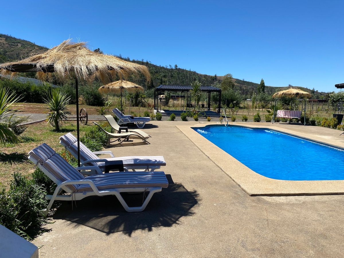 si deseas relajarte y descansar. Te ofrezco una hermosa casa de familia implementada para 09 personas. ubicada a tan solo 45 minutos de concepcion. En un lugar privilegiado. cuenta con piscina, piscina niños y tinaja caliente, con acceso a laguna. living comedor, cocina americana. con puertas -ventanas que dan directamente a piscina y terraza. dormitorio matrimonial con baño privado, dos dormitorios, cada uno con una cama y una litera (3 personas cada uno), pieza individual. baño completo