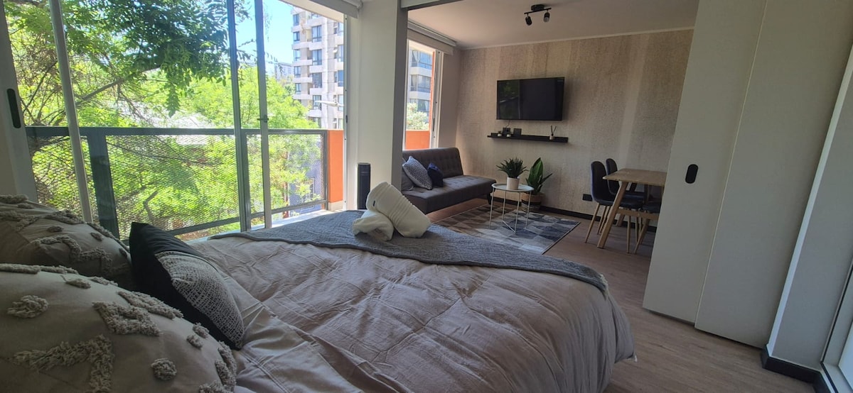 Enjoy Santiago from a modern, bright, and thoughtfully furnished apartment, located steps from Almagro Park and just minutes from the Metro. It's a space designed to make you feel right at home: comfortable, practical, and with an unobstructed view that helps you start each morning with positive energy. Whether you're here for tourism, work, or a city break, you'll find a peaceful place to relax after a busy day.