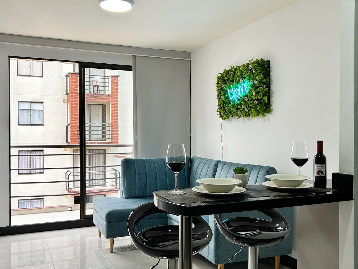 Un apartamento muy acogedor con mucha luz natural con un ambiente muy tranquilo y cómodo con una decoración moderna nueva y todos los servicios necesarios para un muy placentera estadía además cuenta con agua caliente. Se encuentra en el sector mas exclusivo de la ciudad a una cuadra de la zona rosa, Con servicio de doorman y cerradura electrónica de seguridad donde solo tú puedes tener acceso a tu código para el ingreso al apartamento. También tiene parqueadero cubierto en el edificio.